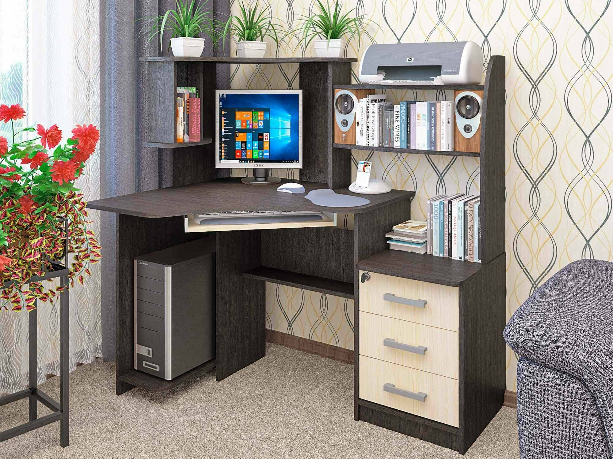 Стол компьютерный с надстройкой и ящиками КС-6, Венге / молочный дуб