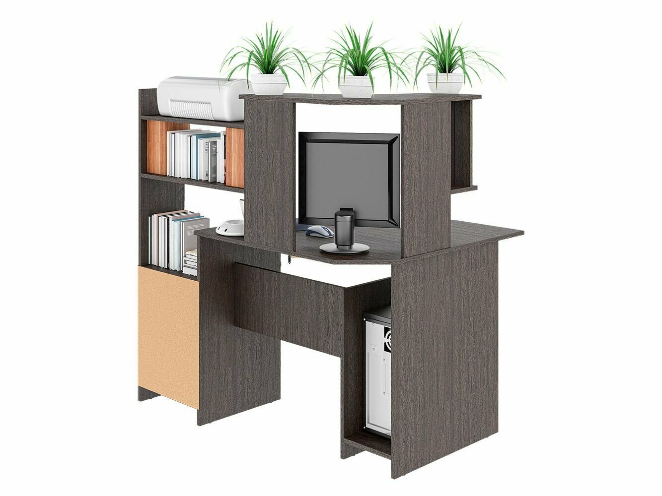 Стол компьютерный с надстройкой и ящиками КС-9, табак / артвуд