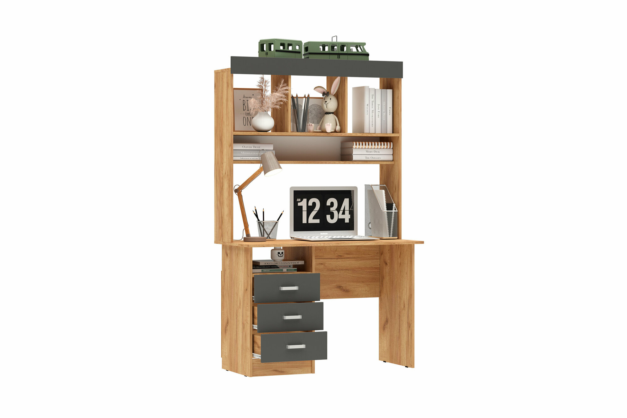 Стол письменный с надстройкой Нонтон Мартина, графит / дуб крафт, 55x110x181.4 см