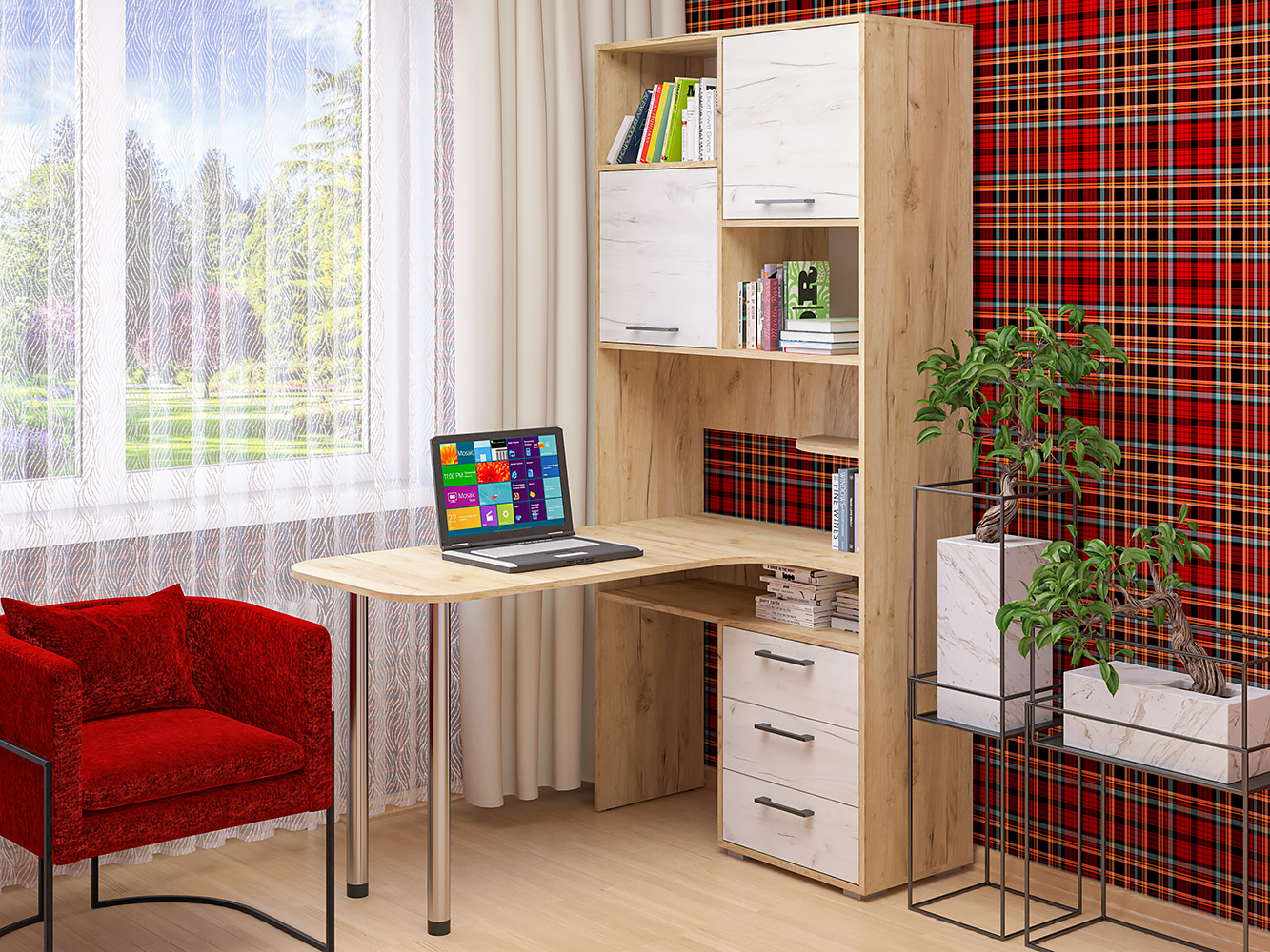 СохранитьСтол компьютерный КС-61 угловой с надстройкой, ящиками, Крафт золотой-светлый интересное:
