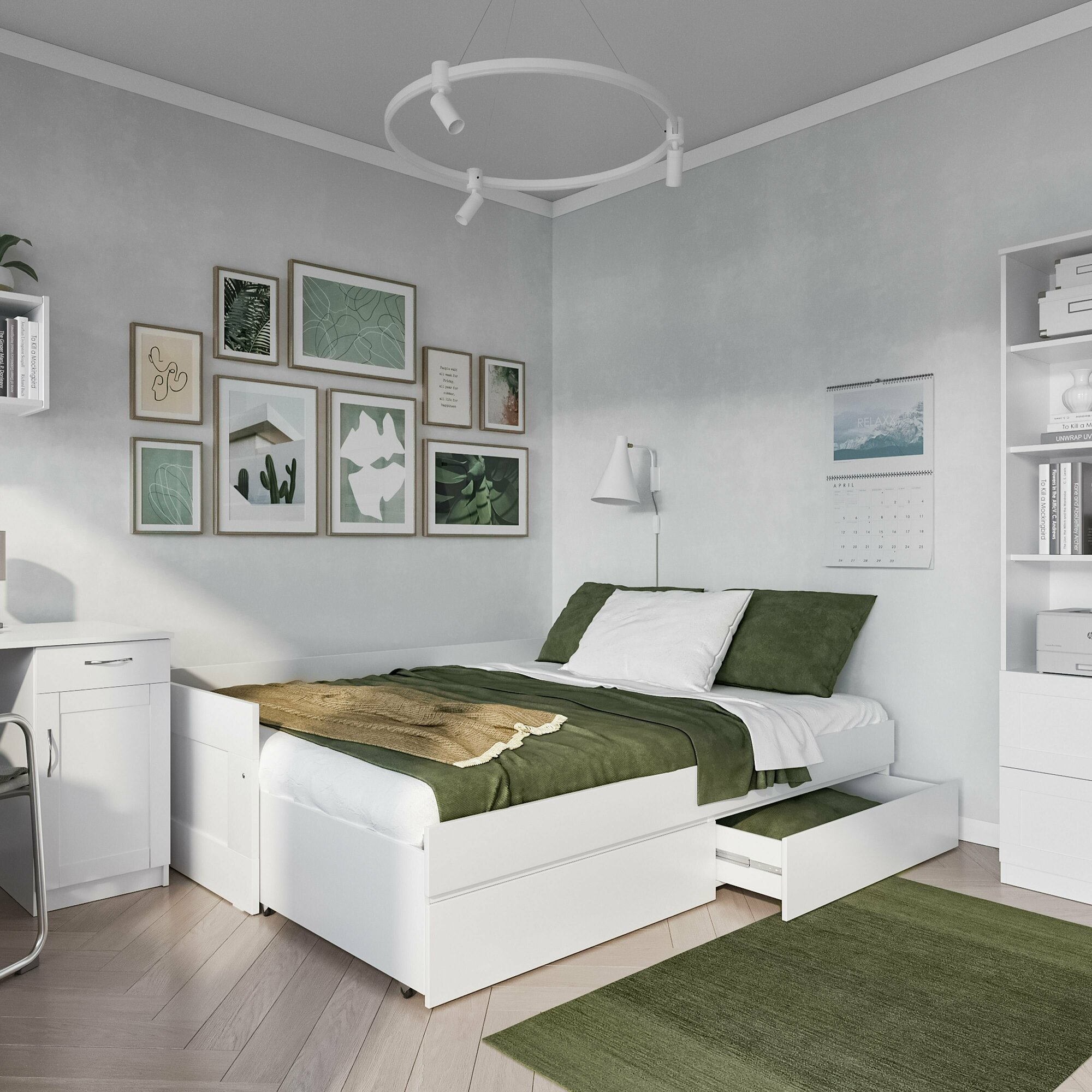 Кровать раздвижная ГУД ЛАКК Сириус, с ящиками, 90х200/180х200 см, белая