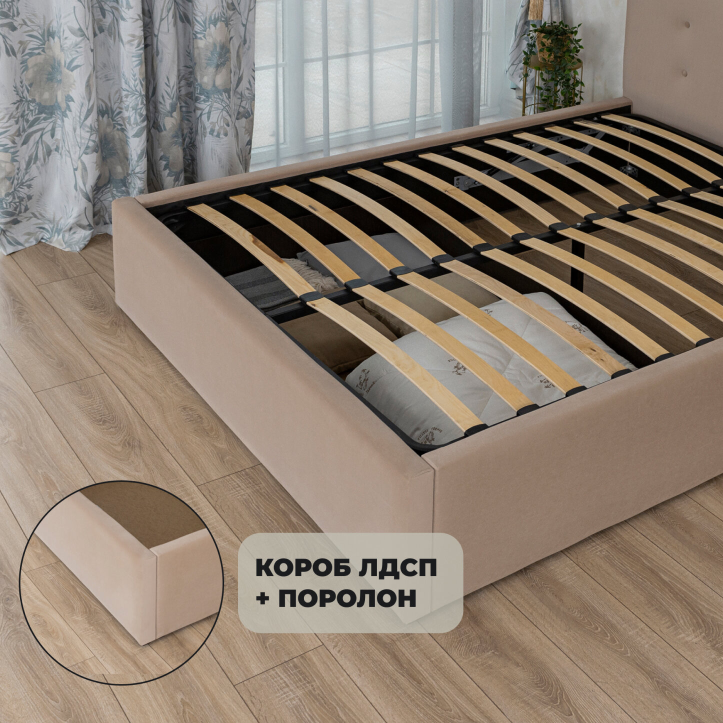 | Особенности | мягкое изголовье, с подъемным механизмом |