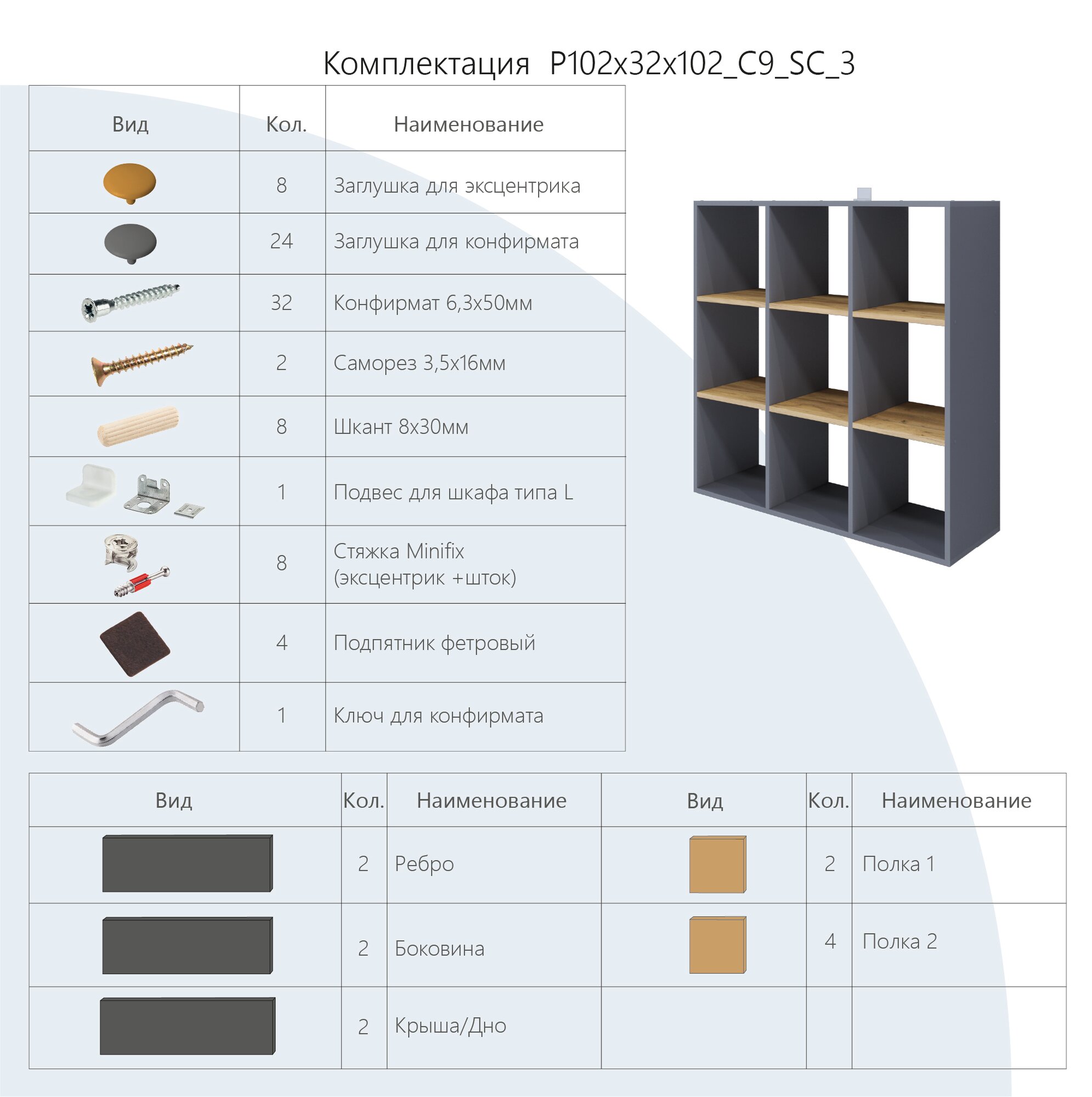 | Комплектация | в комплектацию входит: детали, комплект фурнитуры и инструкция по сборке. |