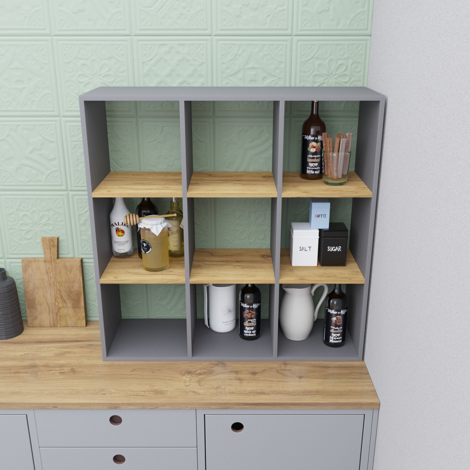 Стеллаж Velardy кубикус, 102x102x32см, серый+дуб крафт золотой