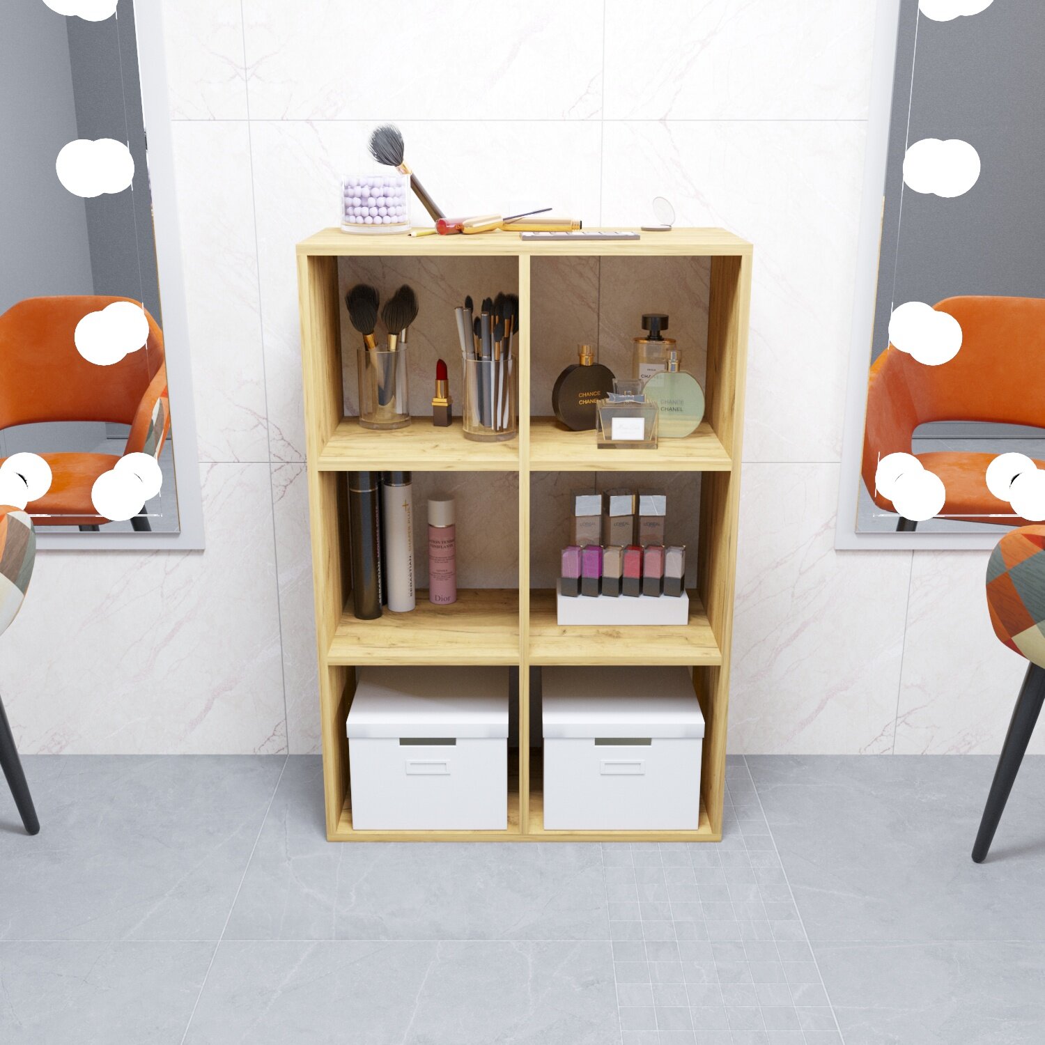 Стеллаж Velardy кубикус, 35x32x69см, белый+дуб крафт золотой