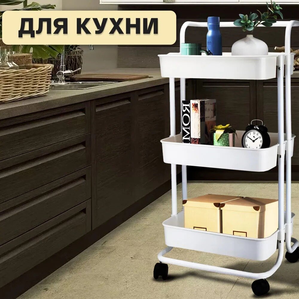 Стеллаж Takara YMH-10 / этажерка на колесиках / 86*41*36 см, белый, 3 корзины интересное: