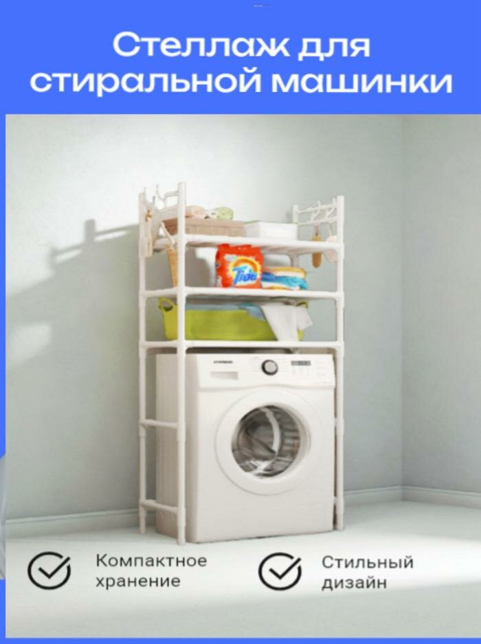 Стеллаж , металл/пластик, белый, для стиральной машины, 64х26х175 см Вместительный трехярусный интересное: