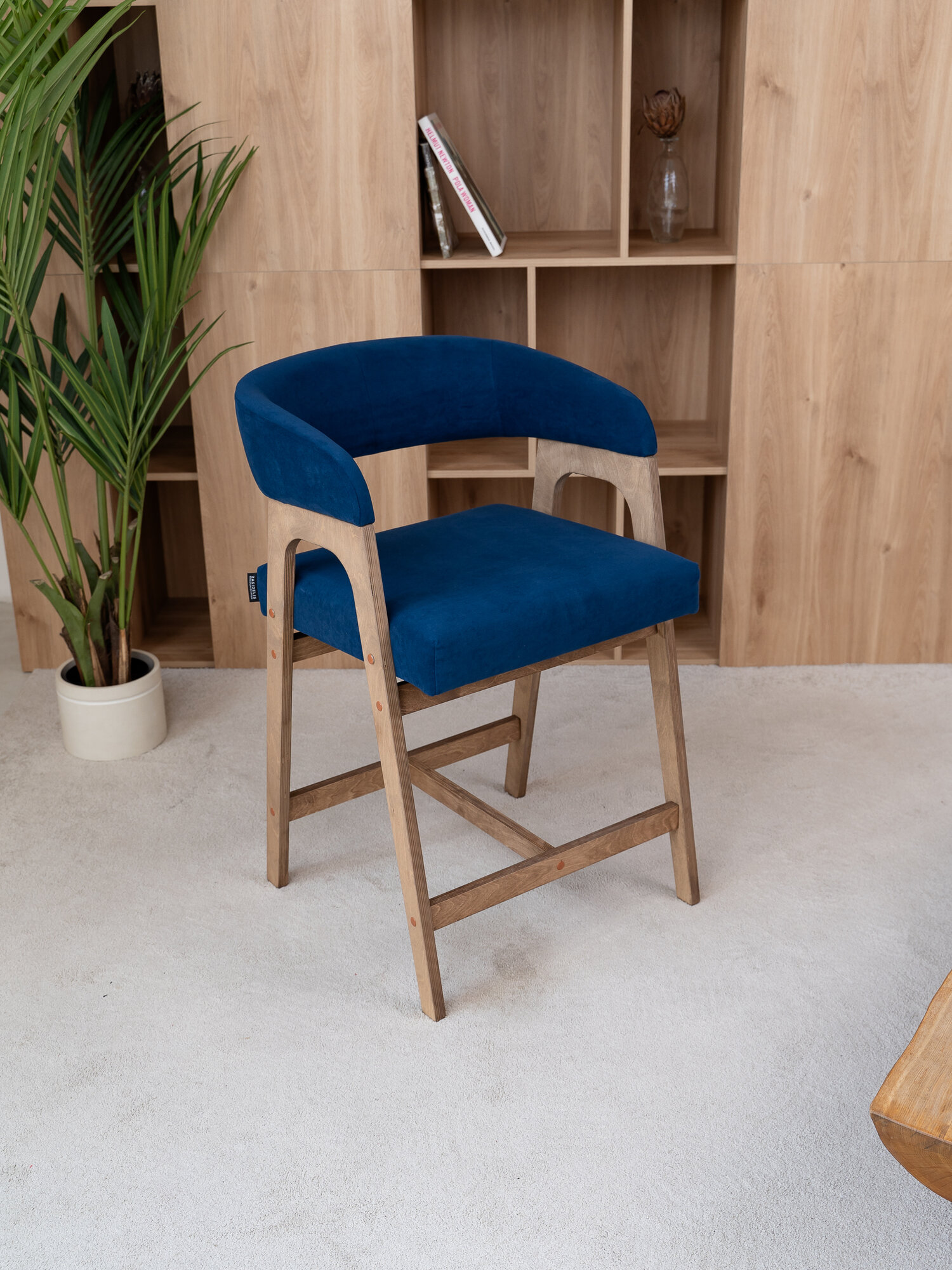 Полубарный стул КAIF со спинкой, синий,коричневое масло