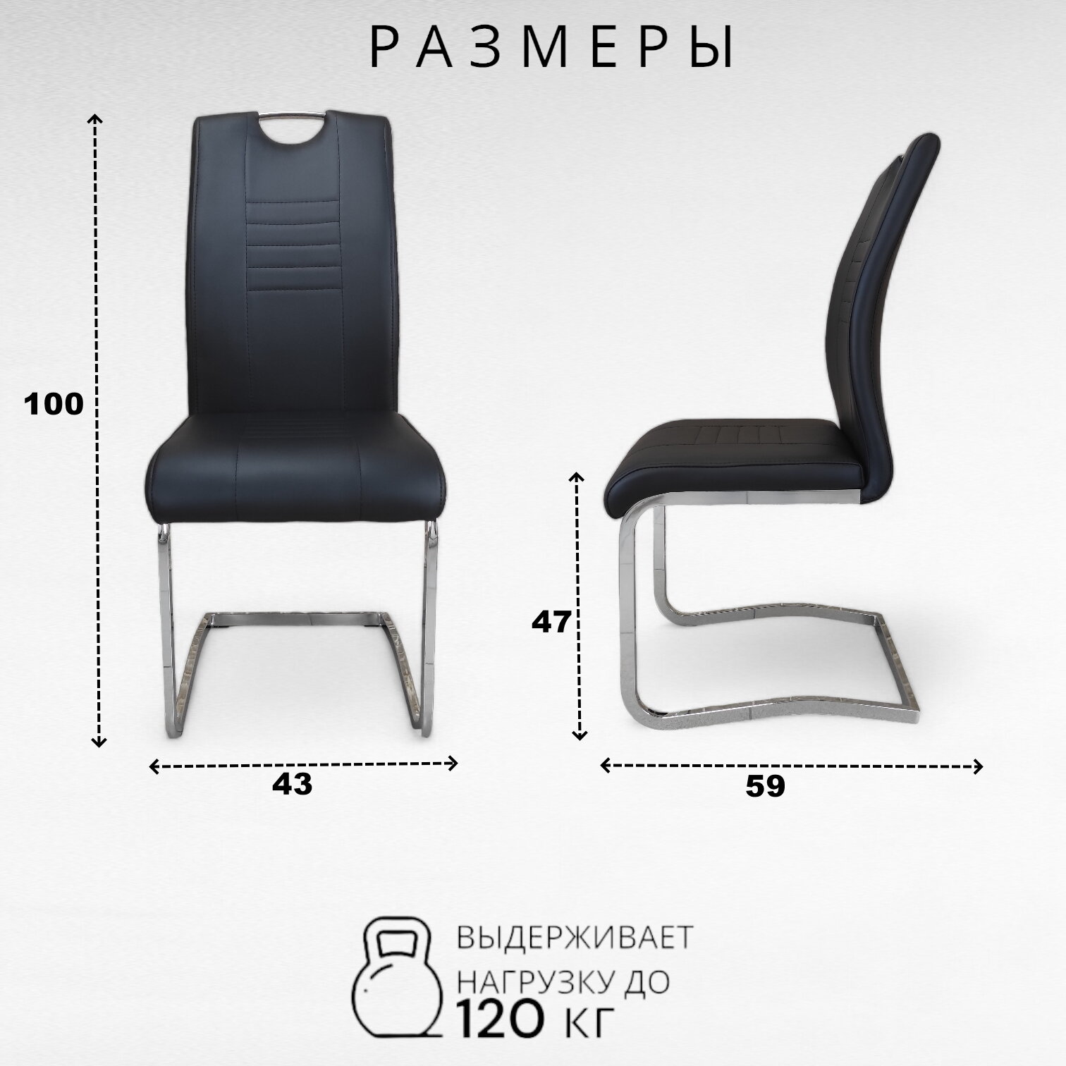 Стулья для кухни Терминал DC506 на полозьях, хром, экокожа черная, 2 шт