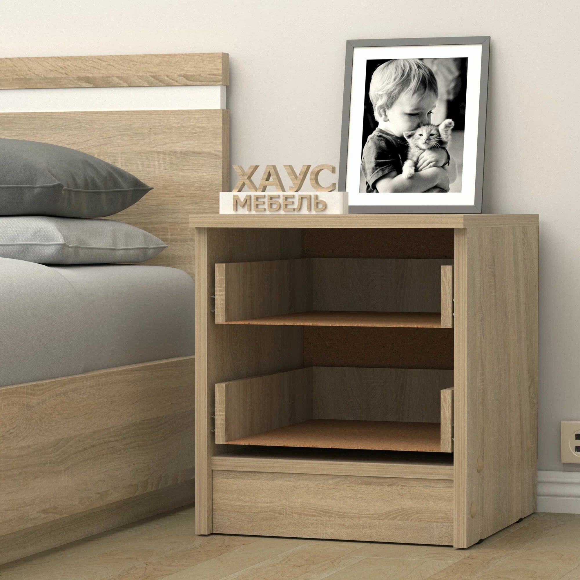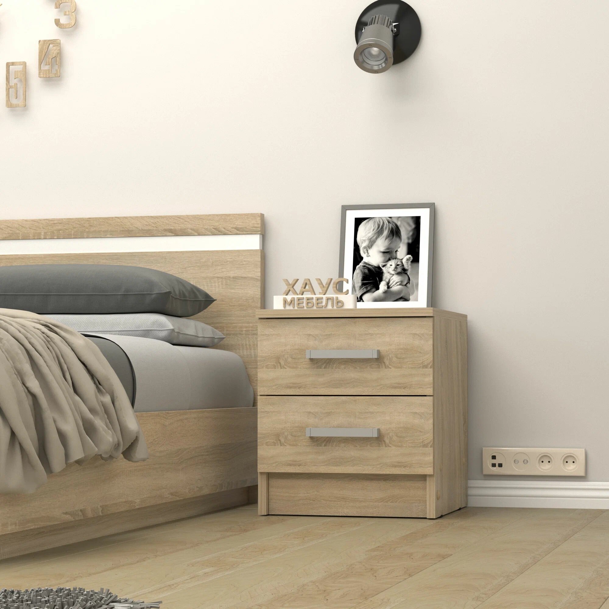 Тумба прикроватная №2, 35х38х42 см, с ящиками - сонома/белый