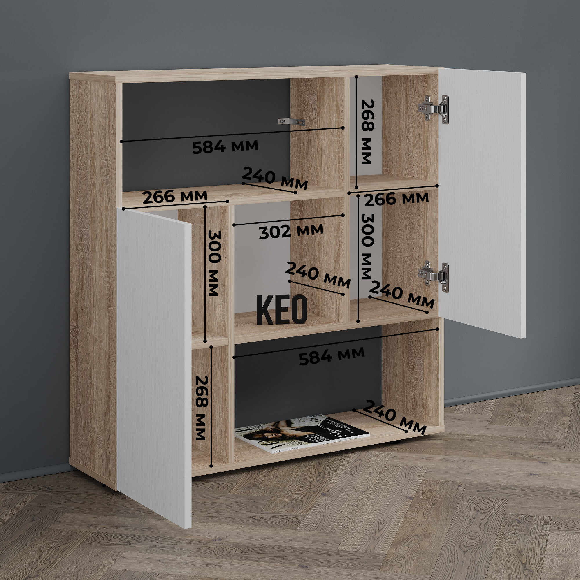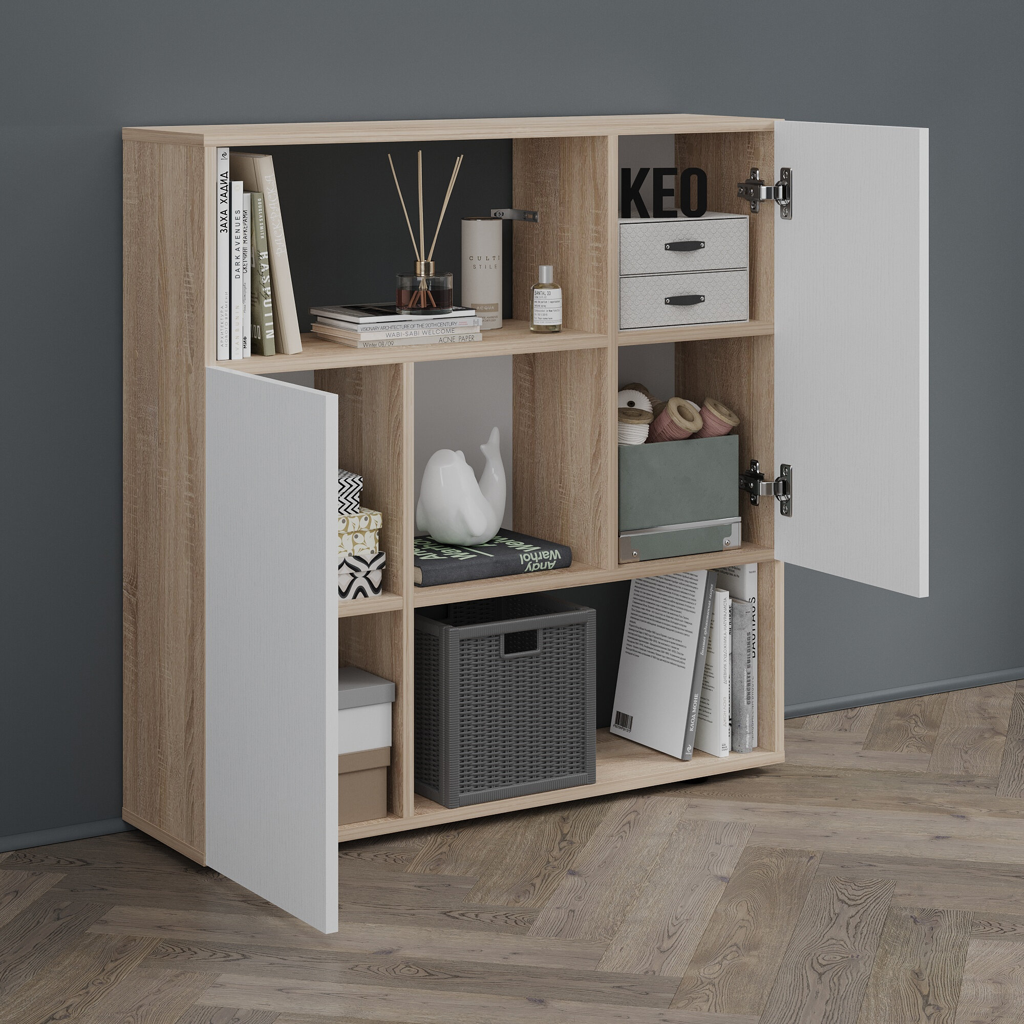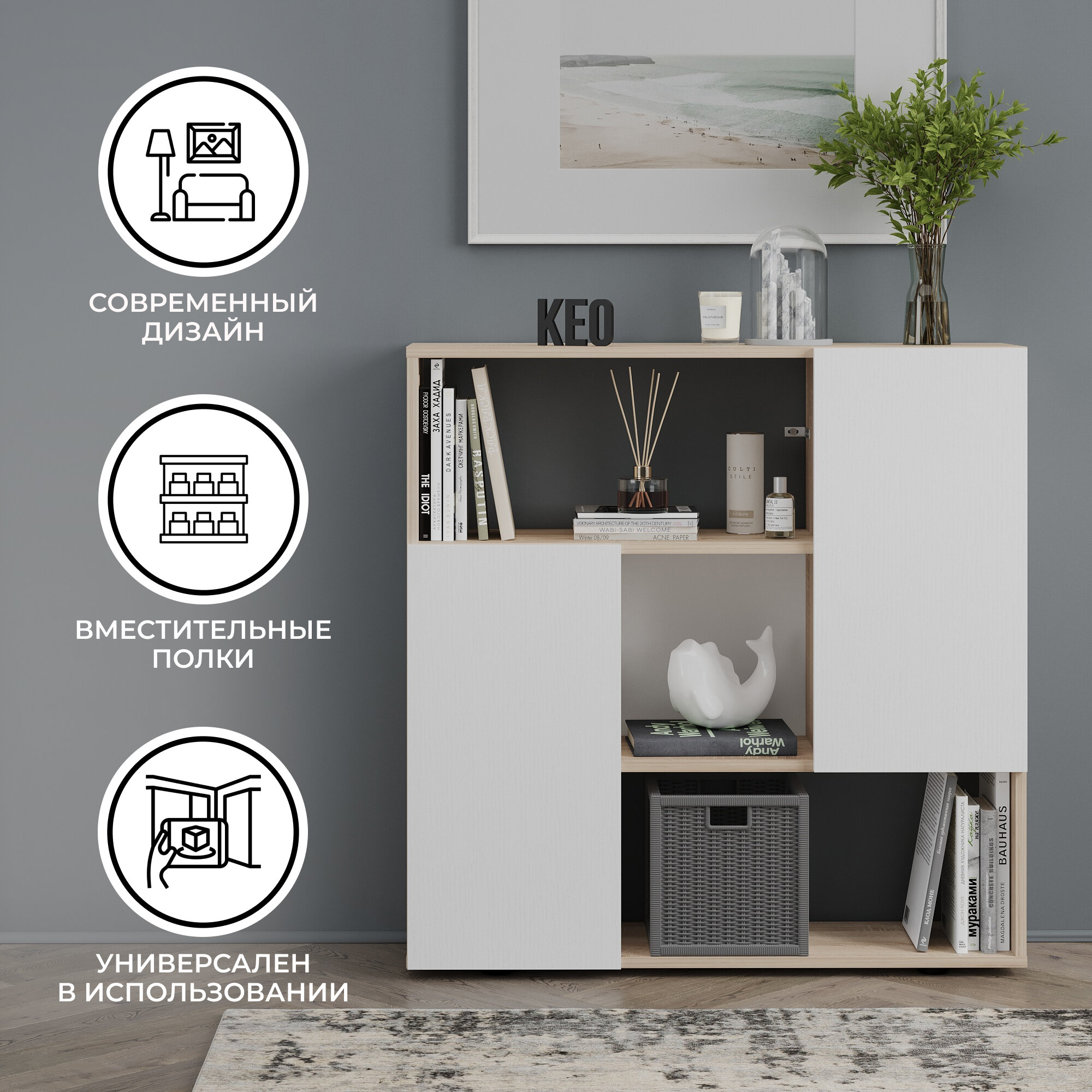 СохранитьКомод универсальный Кео КМД-205 белый и сонома, 92х90х26 см для спальни, гостиной, детской интересное: