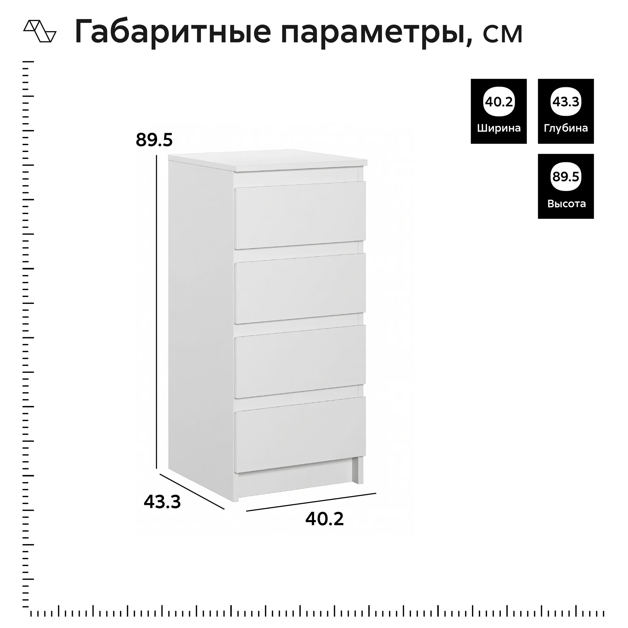 Комод НК-мебель Stern Т-2 (72674926), 16 мм, 40х89,5х43,3 см, 4 ящика, белый