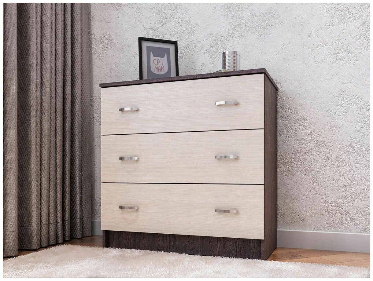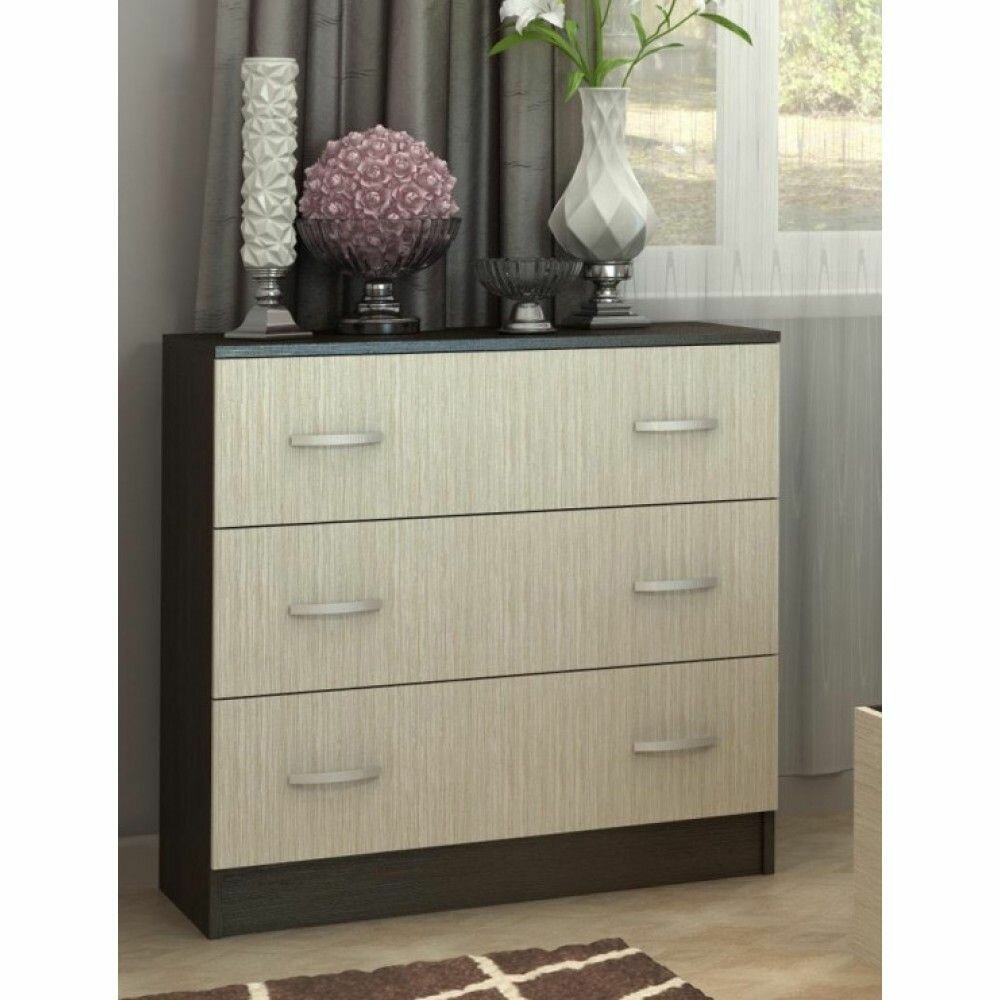 Комод Ронда КМ-02 с 3 выдвижными ящиками, Беленый дуб/Венге