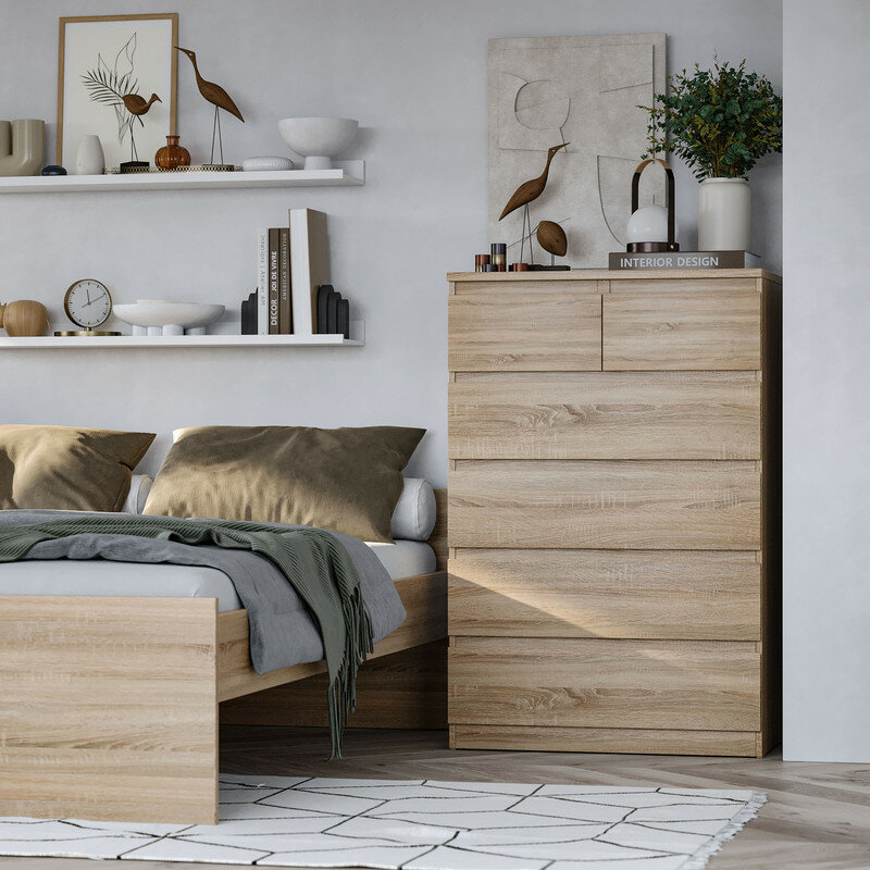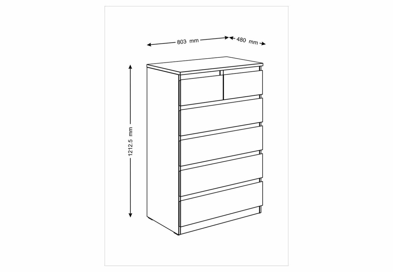 Комод мальта с шестью выдвижными ящиками, 803х480х1212, цвет Дуб Сонома.
