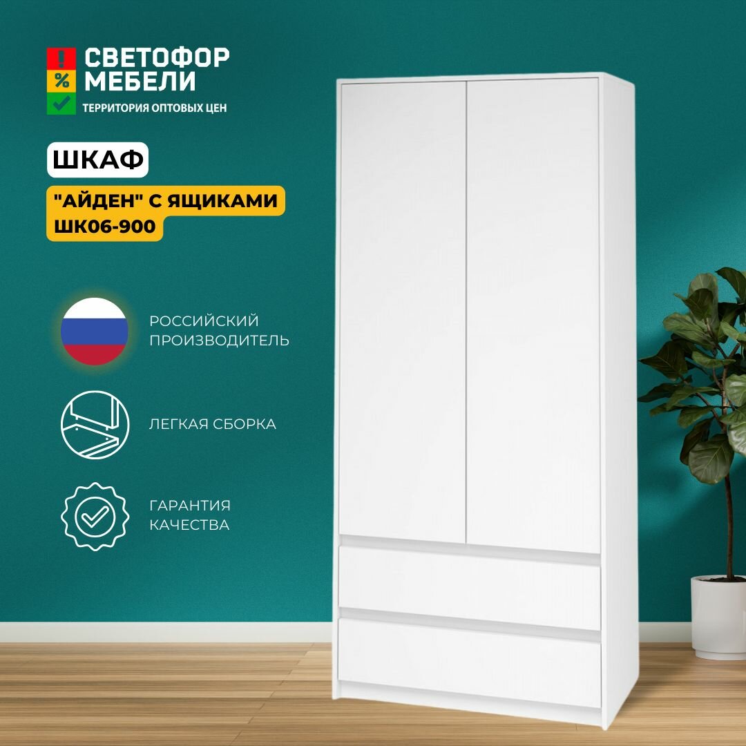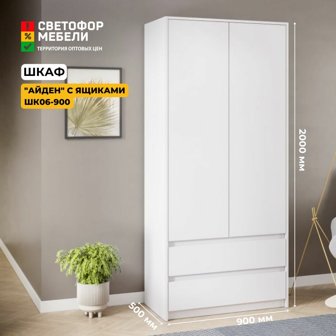 Шкаф распашной Интерьер центр Айден ШК06 900 2-х створчатый 900х2000х500, Белый интересное: