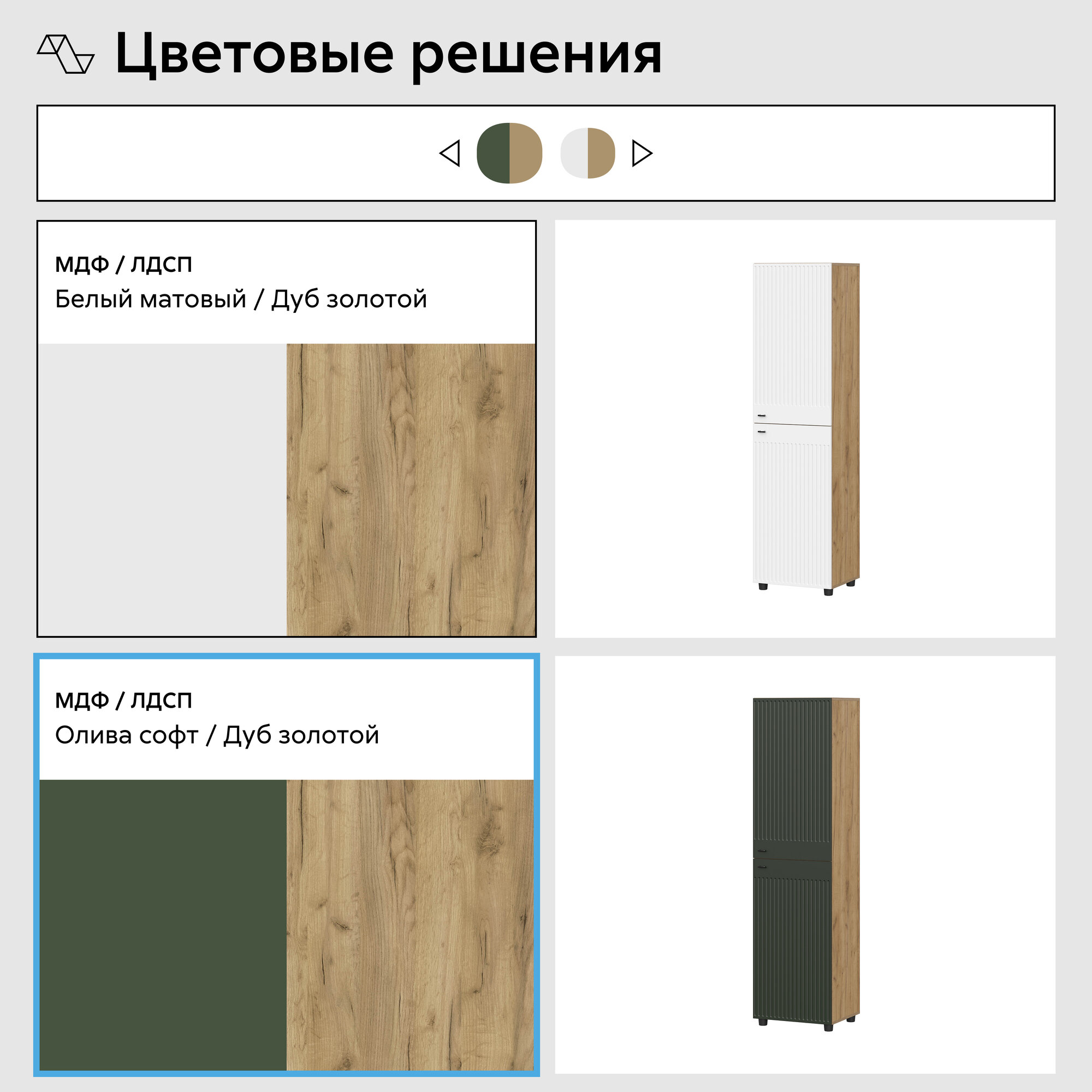 Шкаф-пенал для одежды Нонтон Милан, дуб золотой / олива софт 50 см