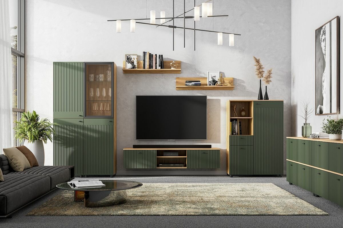 Шкаф SV Мебель Милан с открытой нишей дуб золотой / олива софт 90.1х41.6х128.6 см