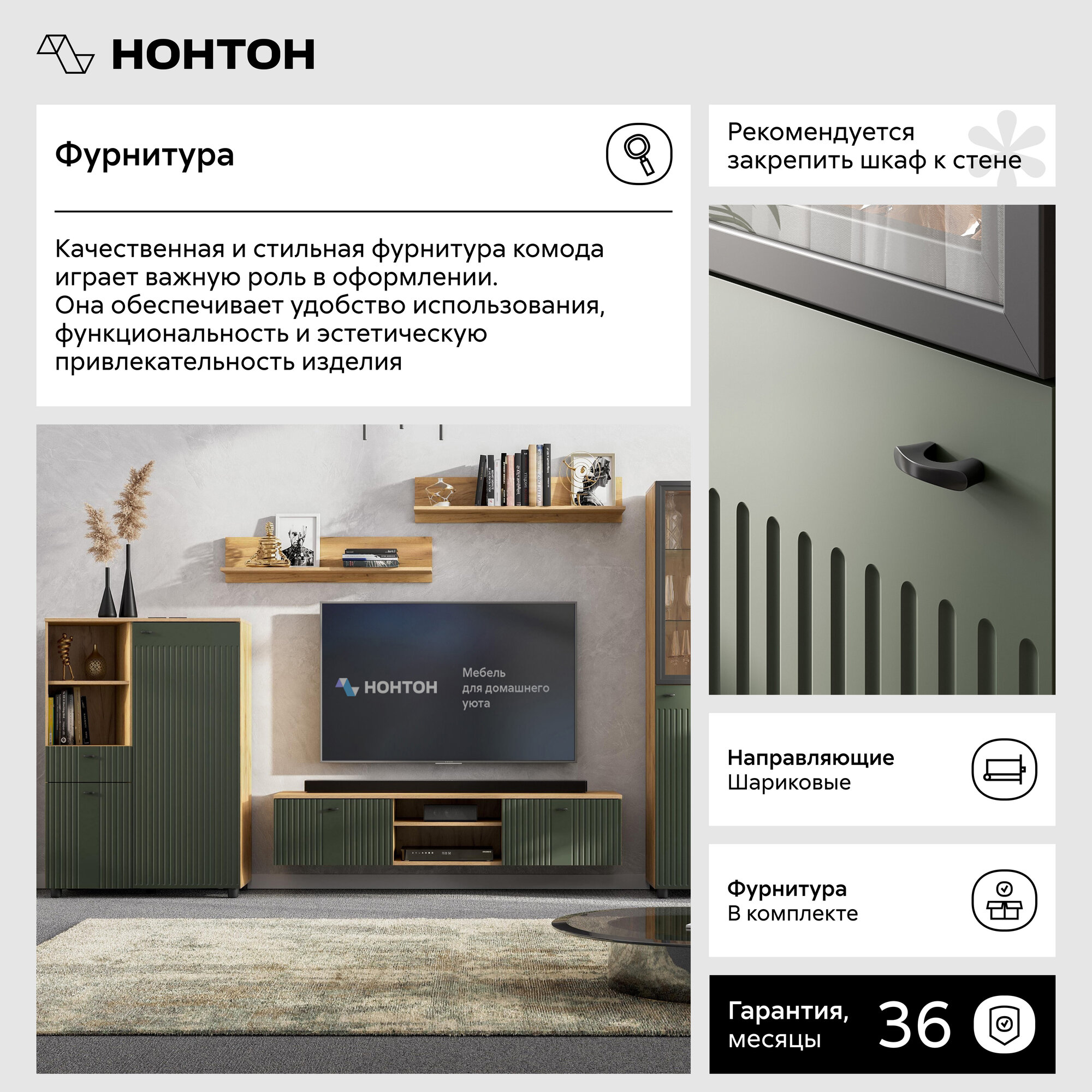 Шкаф-стеллаж с ящиком Нонтон Милан, дуб золотой / олива софт 90 см