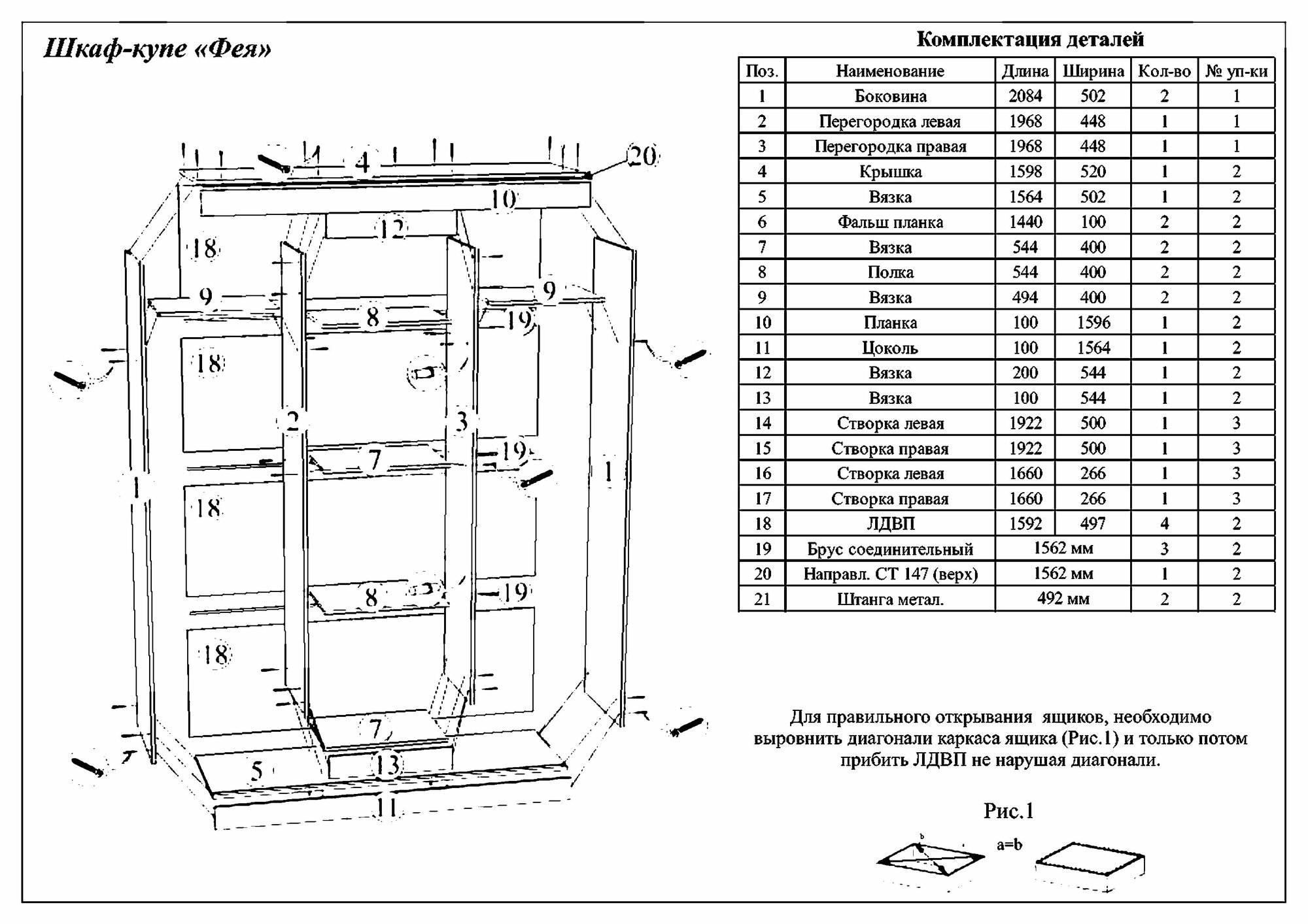 | Комплектация | фасад, корпус, фурнитура, ножки, инструкция по сборке |