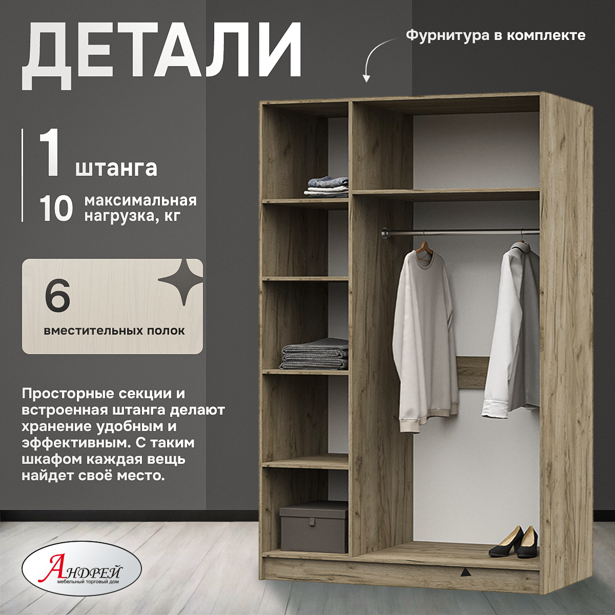Шкаф-купе для одежды Андрей-4М рекламный (1300*2020*520 мм) шимо темный/шимо светлый