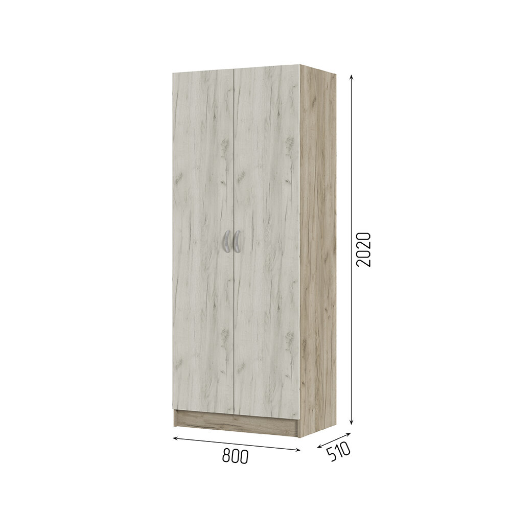 Симба шкаф 2-х створчатый (800х2000х570) дуб белфорт/белый глянец