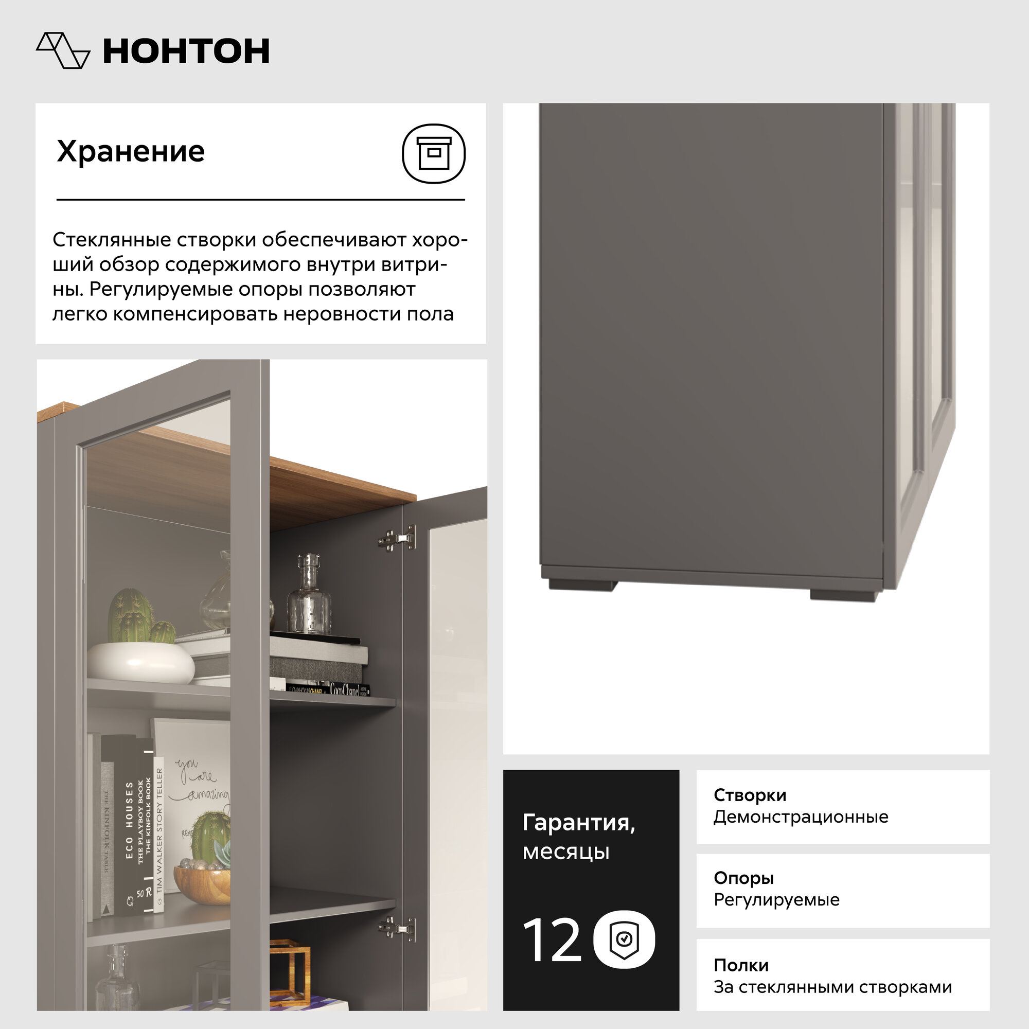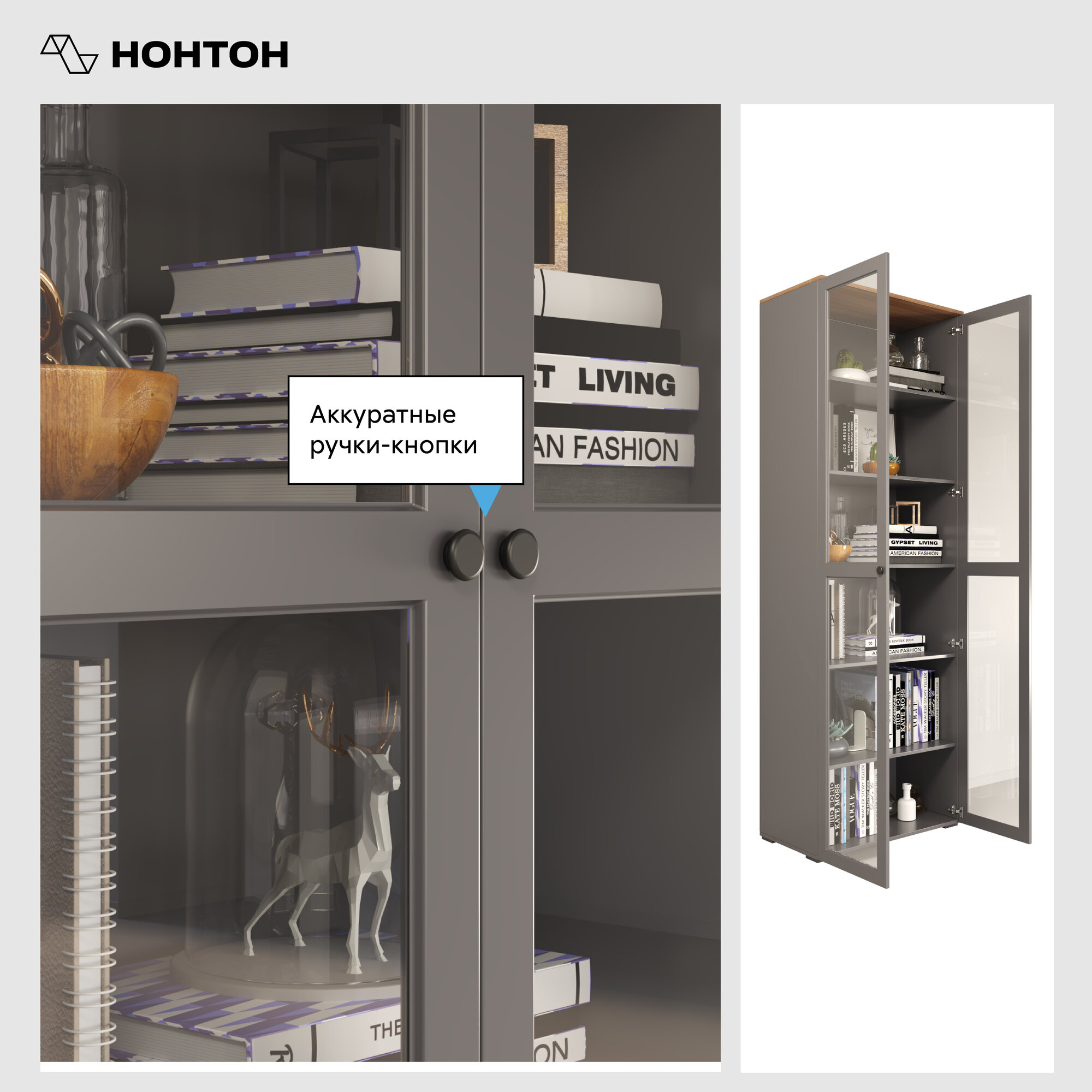 СохранитьПервый Мебельный Распашной шкаф-витрина Остин с полками, 80х42х230 см, Серый графит / Дуб Крафт золотой интересное: