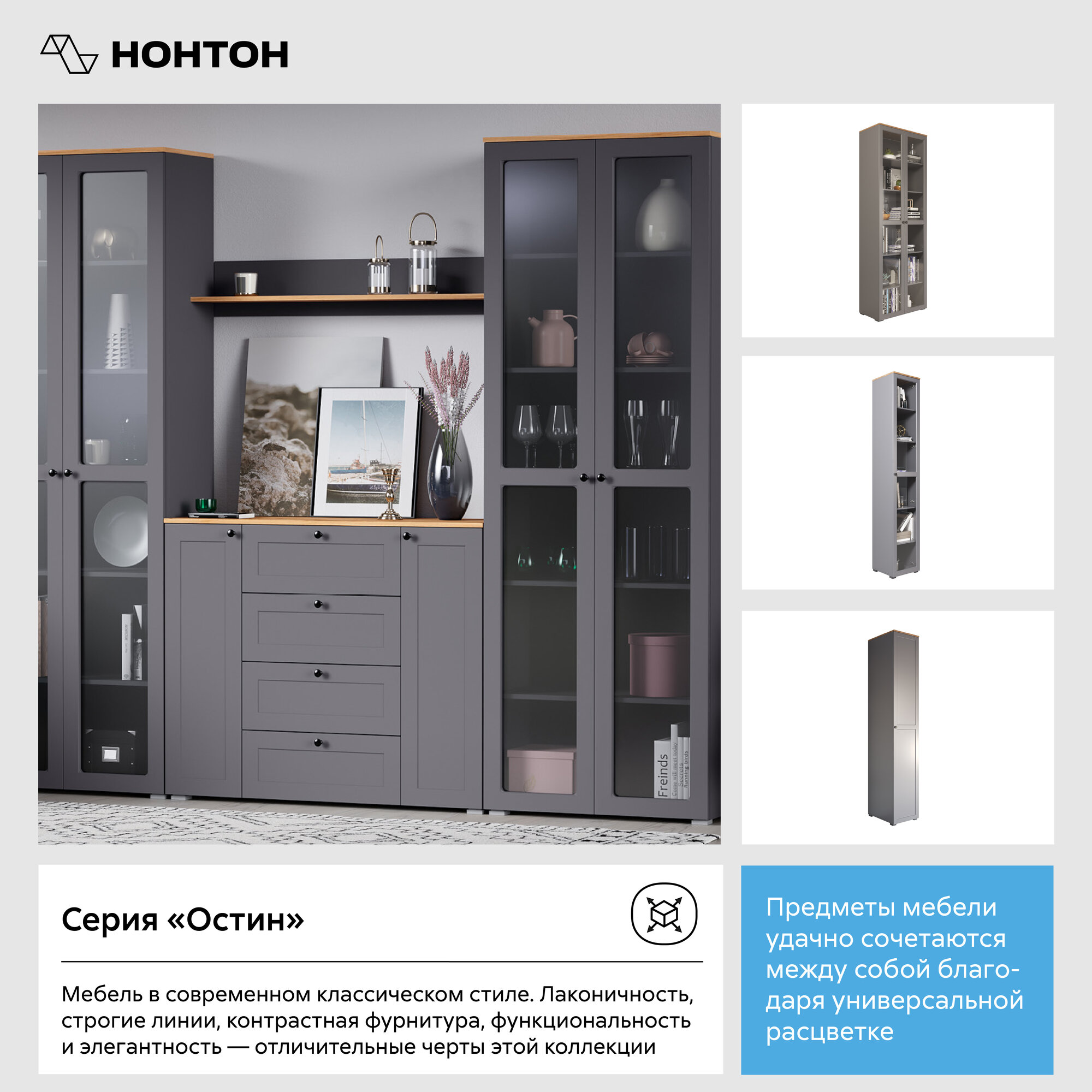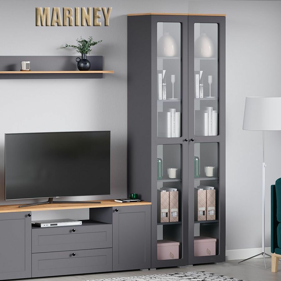 Шкаф-витрина Mobi Остин 16.394.02 Серый Графит 0162 РЕ/Дуб Золотой CRAFT/Графит ZB 856-2 ПВХ