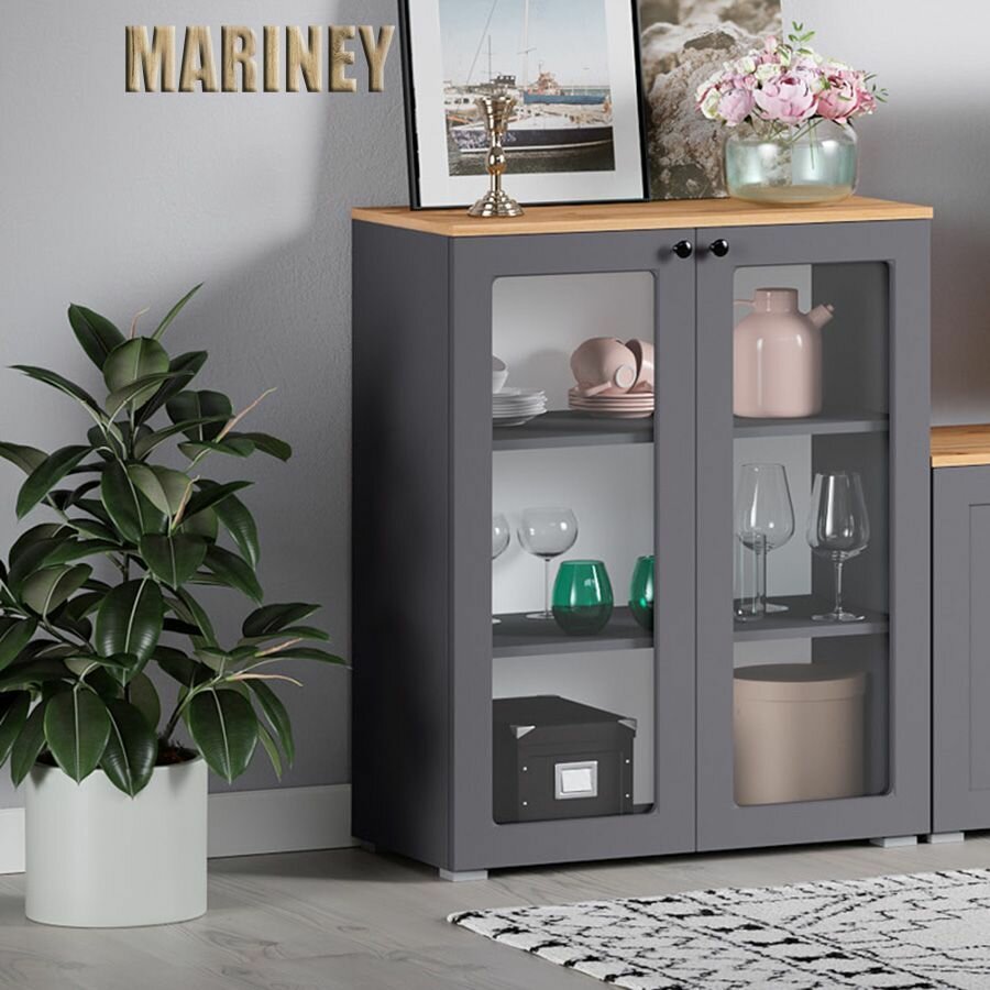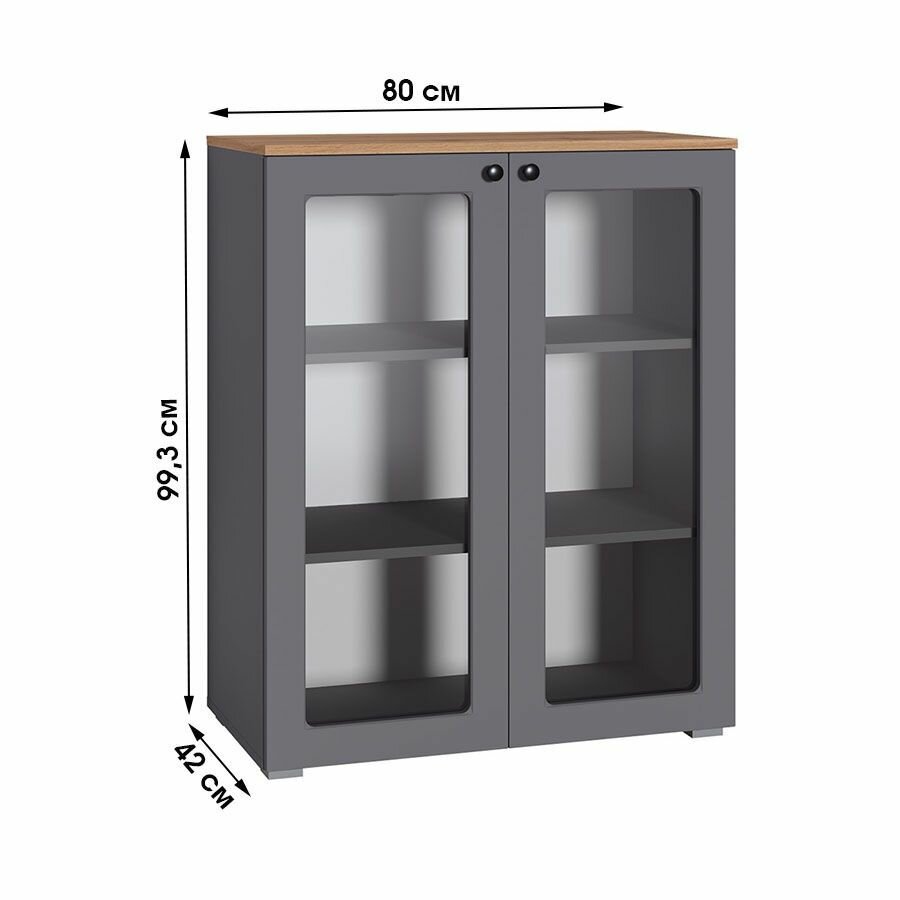Шкаф-витрина "Моби Остин", 80х42х99,3 см, серый/дуб, 2 двери, ЛДСП/МДФ/стекло
