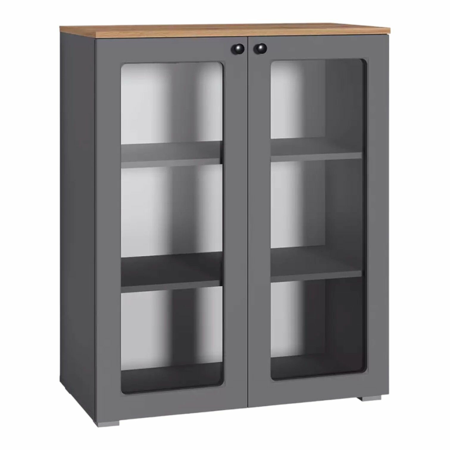 Шкаф-витрина Mobi Остин 16.394.02 Серый Графит 0162 РЕ/Дуб Золотой CRAFT/Графит ZB 856-2 ПВХ