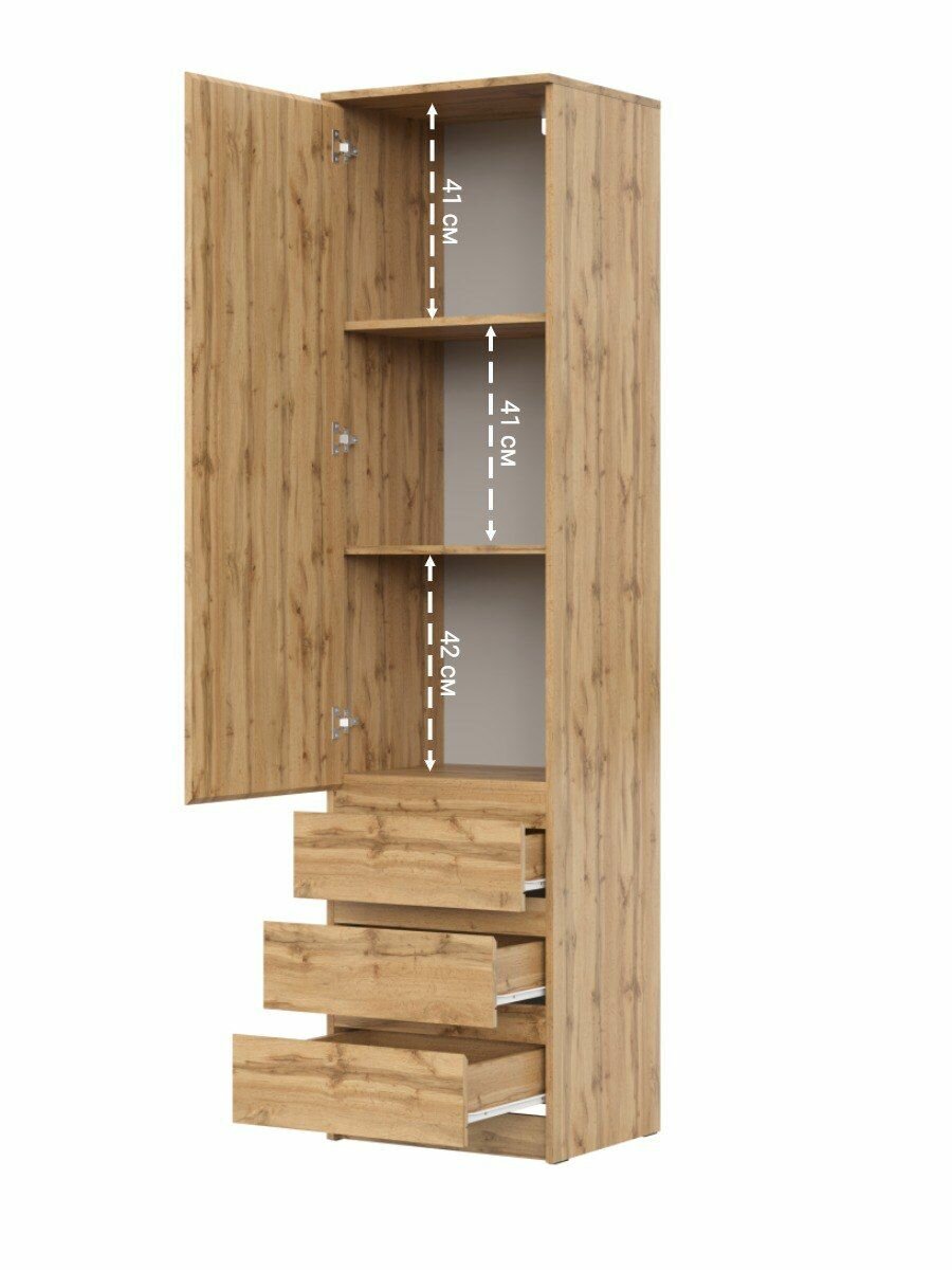 Шкаф-пенал с распашной дверцей и выдвижными ящиками STARK ШКЯ-1, Дуб Вотан, 50,1х200,3х43,3 см (ШхВхГ)