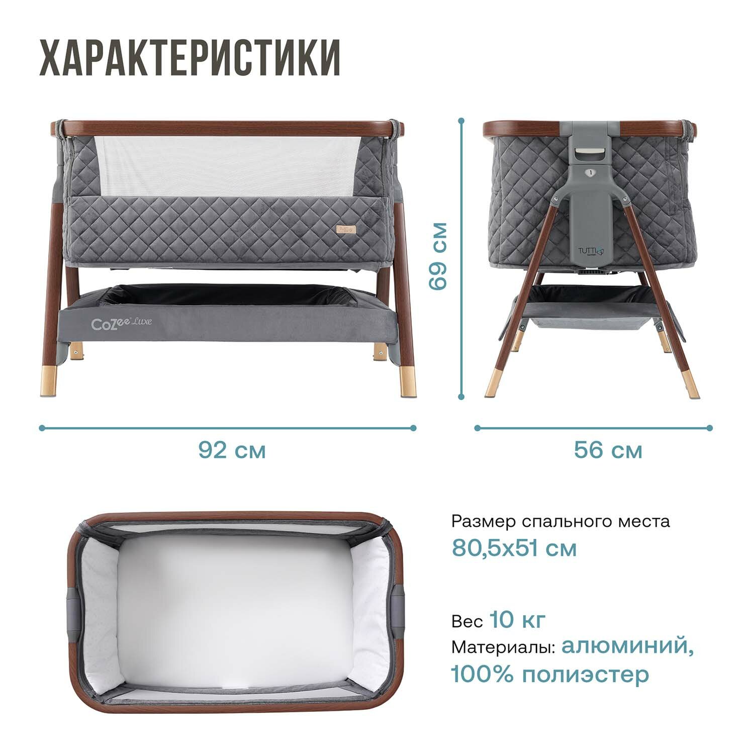 Колыбель Tutti Bambini CoZee Luxe Walnut/Slate с колесами 211208/6581 интересное: