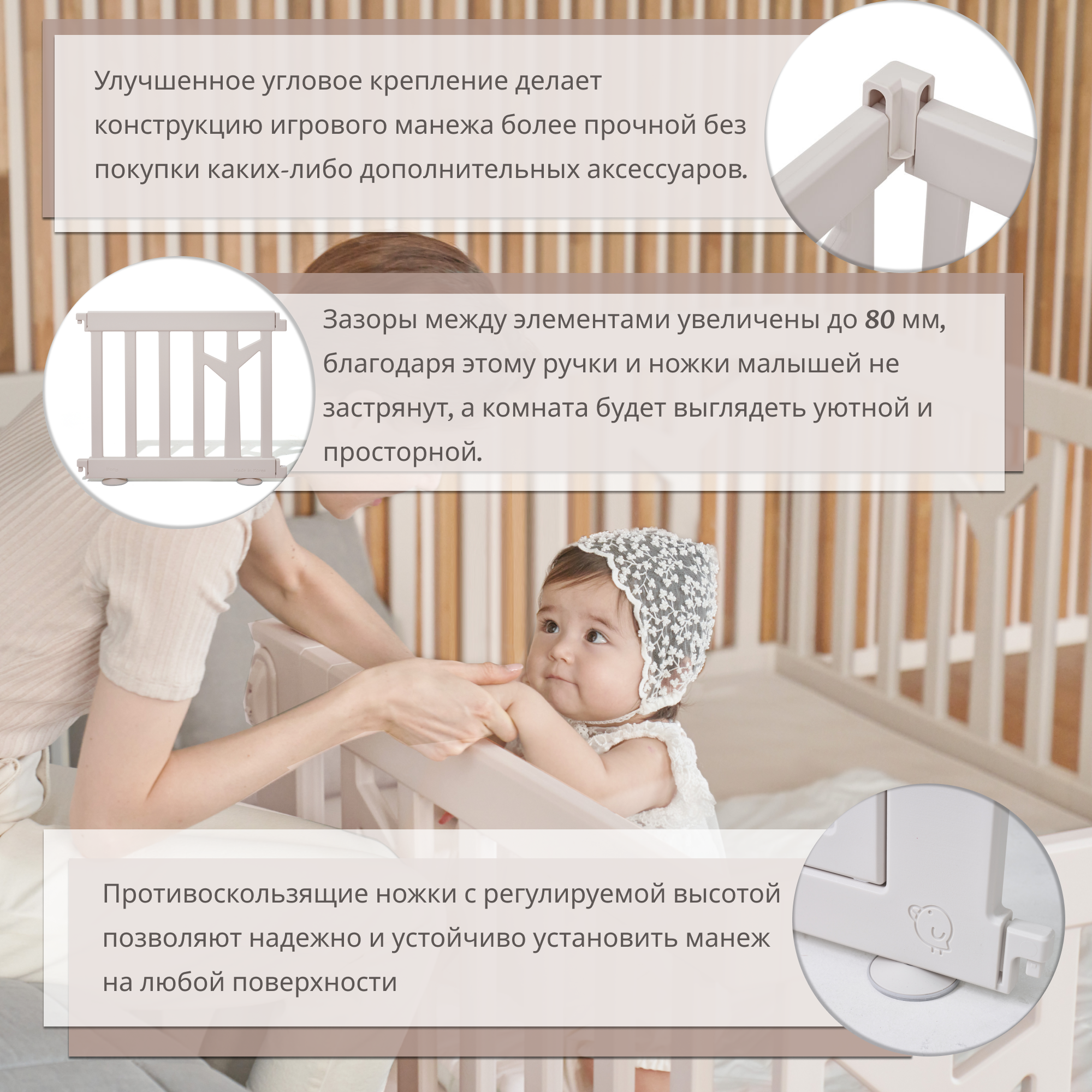 Детский манеж IFAM Birch, прямоугольный, бежевый интересное: