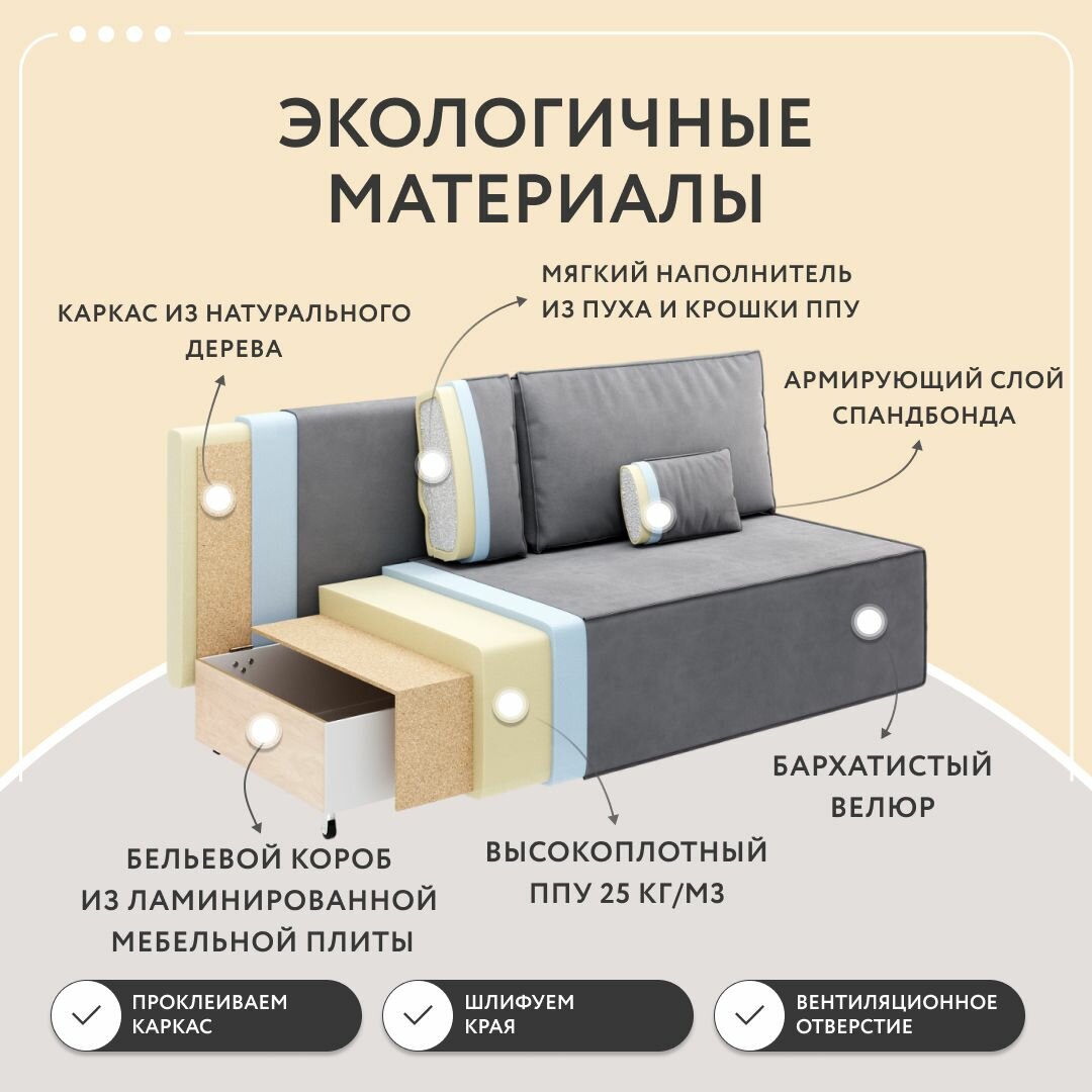 Диван-кровать Dee One раскладной прямой Корсо Лайт, еврокнижка, велюр, 187х87х76, с ящиком, серый