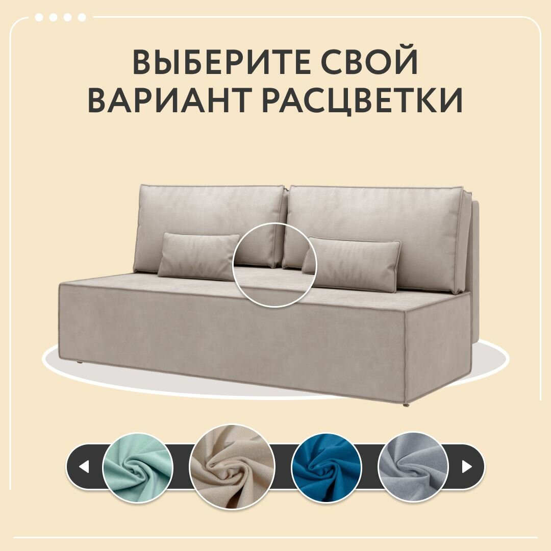 Диван-кровать Dee One раскладной прямой Корсо Лайт, еврокнижка, велюр, 187х87х76, с ящиком, бежевый