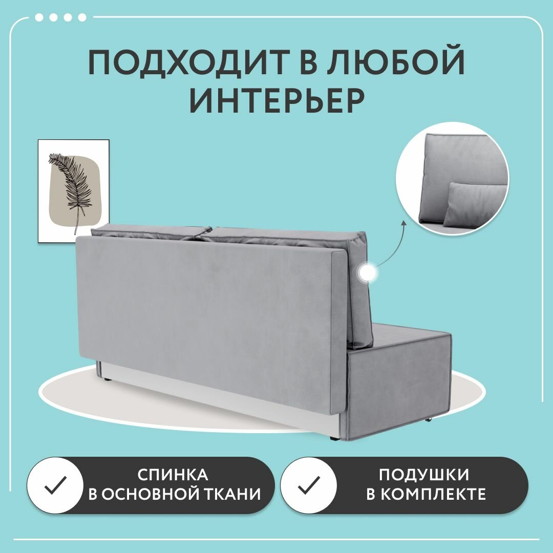Диван-кровать Dee One раскладной прямой Корсо Лайт, еврокнижка, велюр, 187х87х76, с ящиком, серый