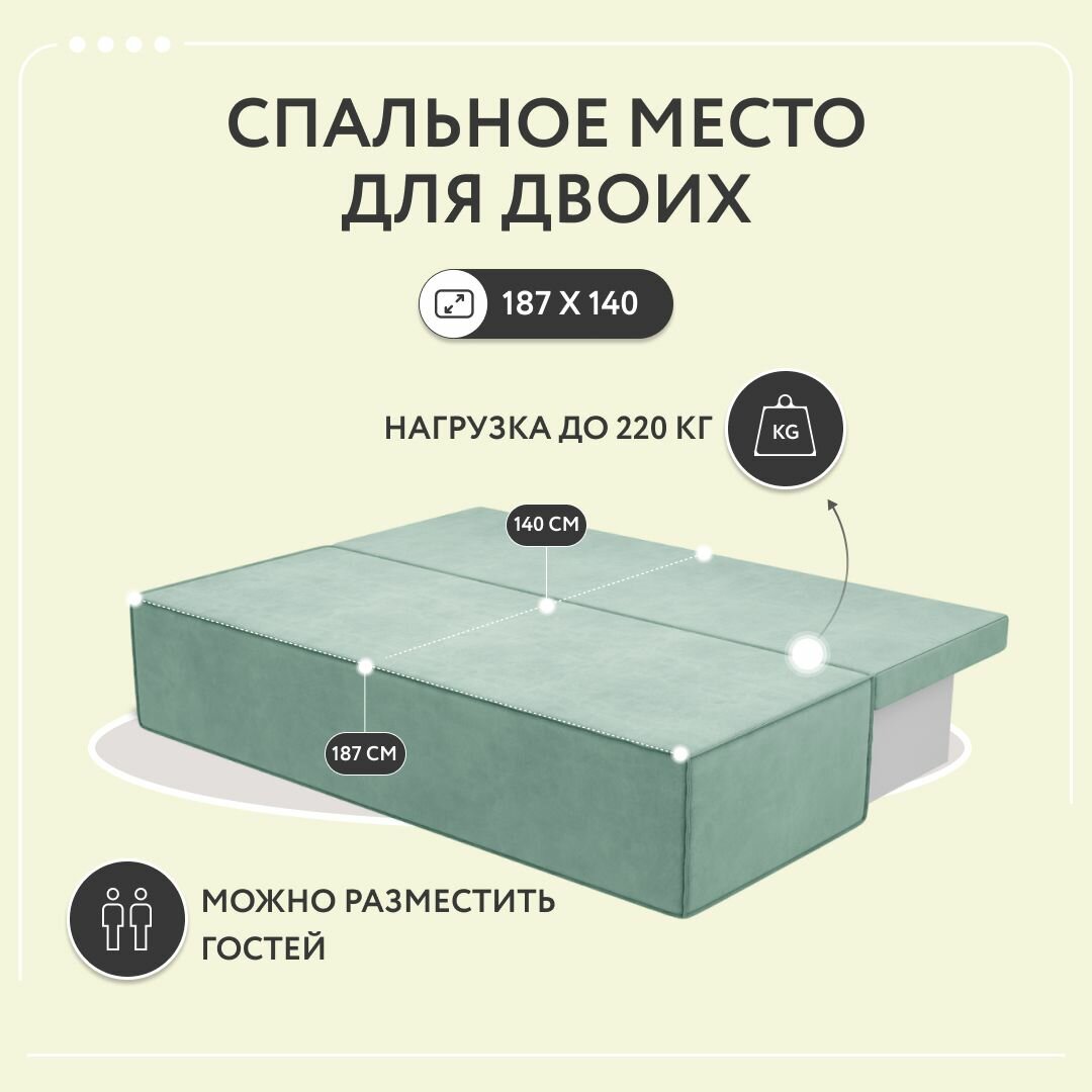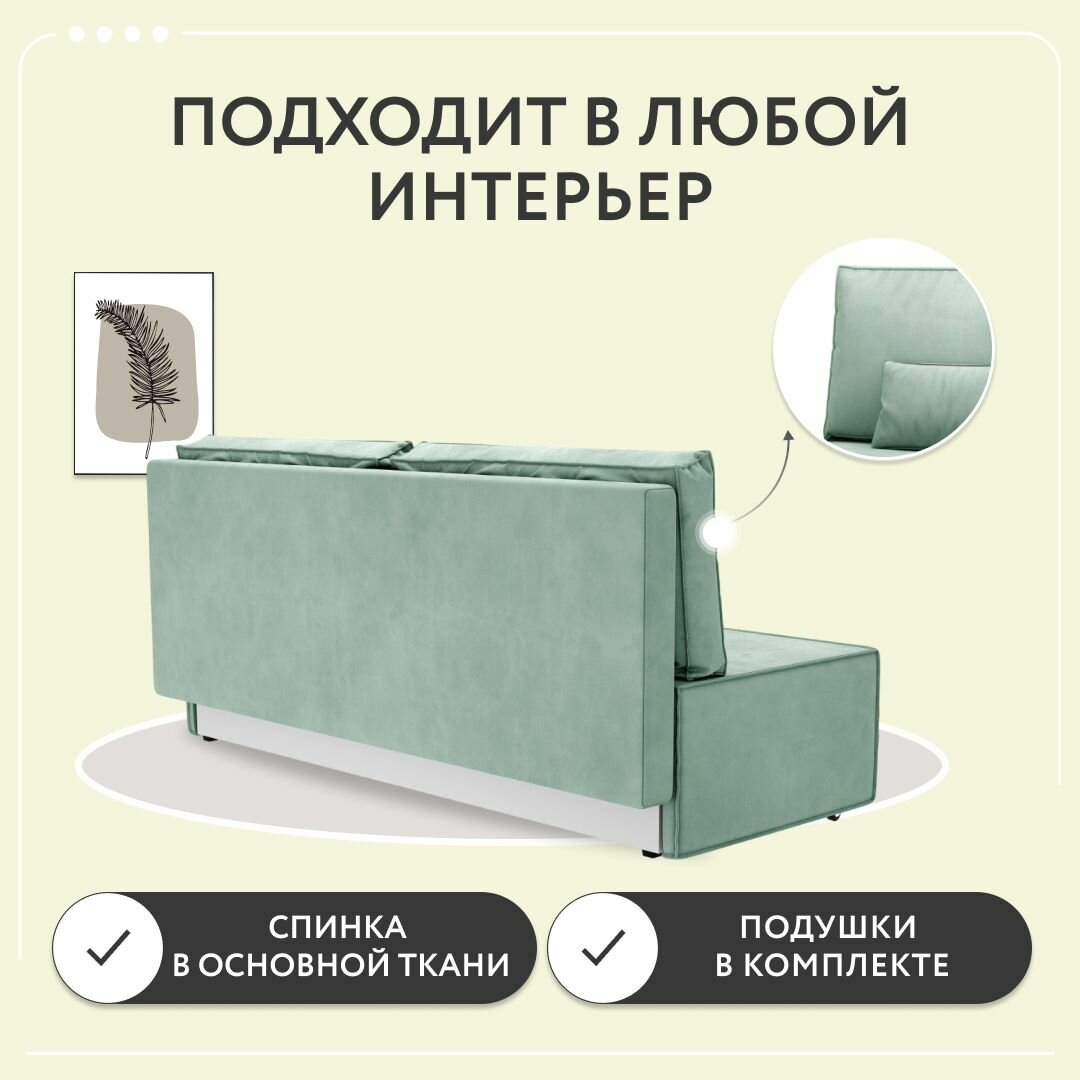Диван-кровать раскладной прямой Веселая компания, еврокнижка, велюр, мятный, 184х87х76
