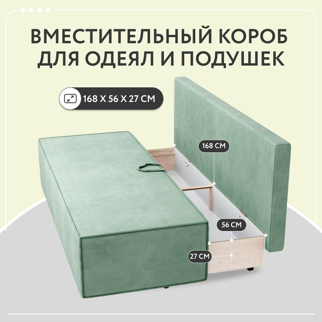 Диван-кровать Dee One раскладной прямой Корсо Лайт, еврокнижка, велюр, 187х87х76, с ящиком, мятный