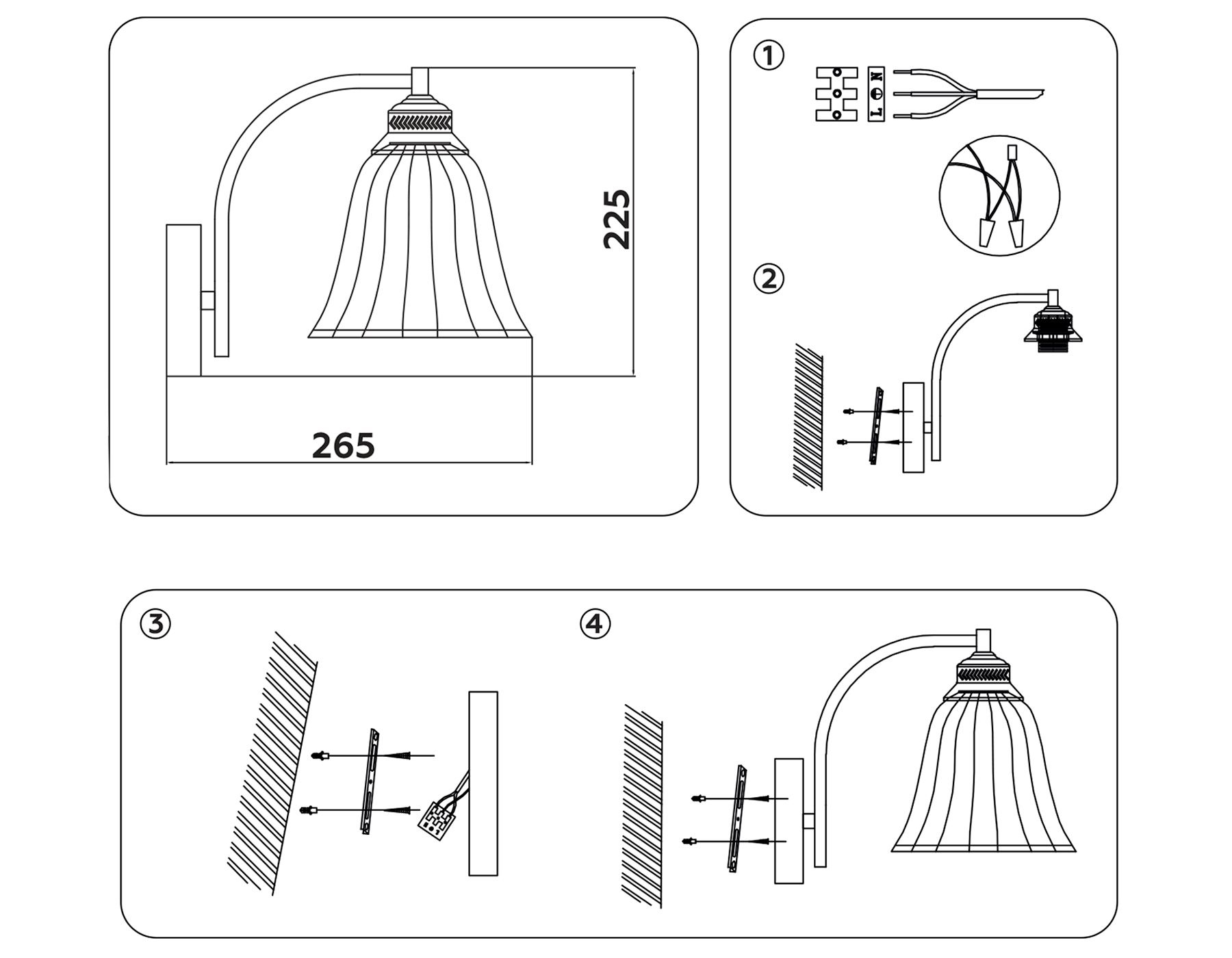 | Комплектация | Настенный светильник со сменной лампой (лампочка в комплект не входит) |