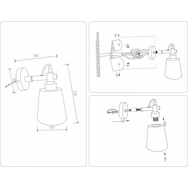 | Особенности | возможность подключения диммера / лампы в комплекте / поворотный / проводной / прозрачный плафон / регулировка по высоте / с абажуром / с выключателем |
