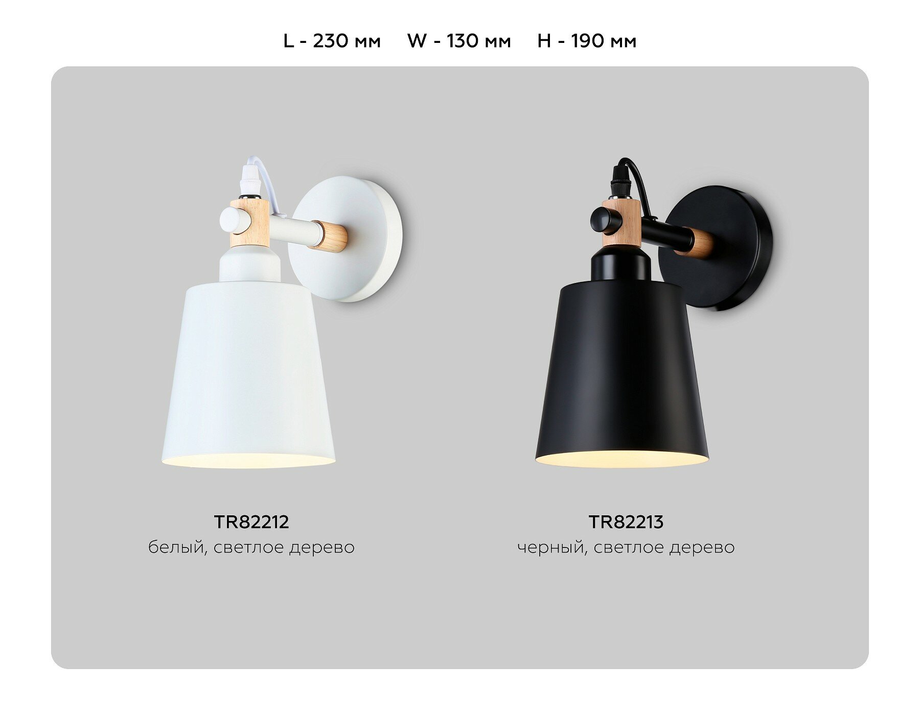 Настенный светильник с выключателем в стиле лофт TR8181 BK/LW черный/светлое дерево E27 max 40W 395*60*210