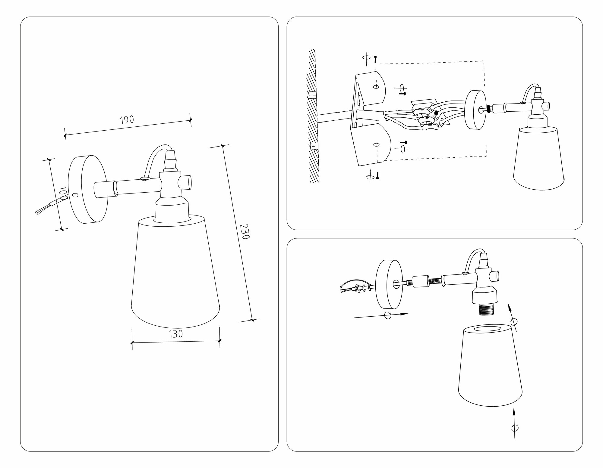 | Комплектация | Настенный светильник со сменной лампой (лампочка в комплект не входит) |
