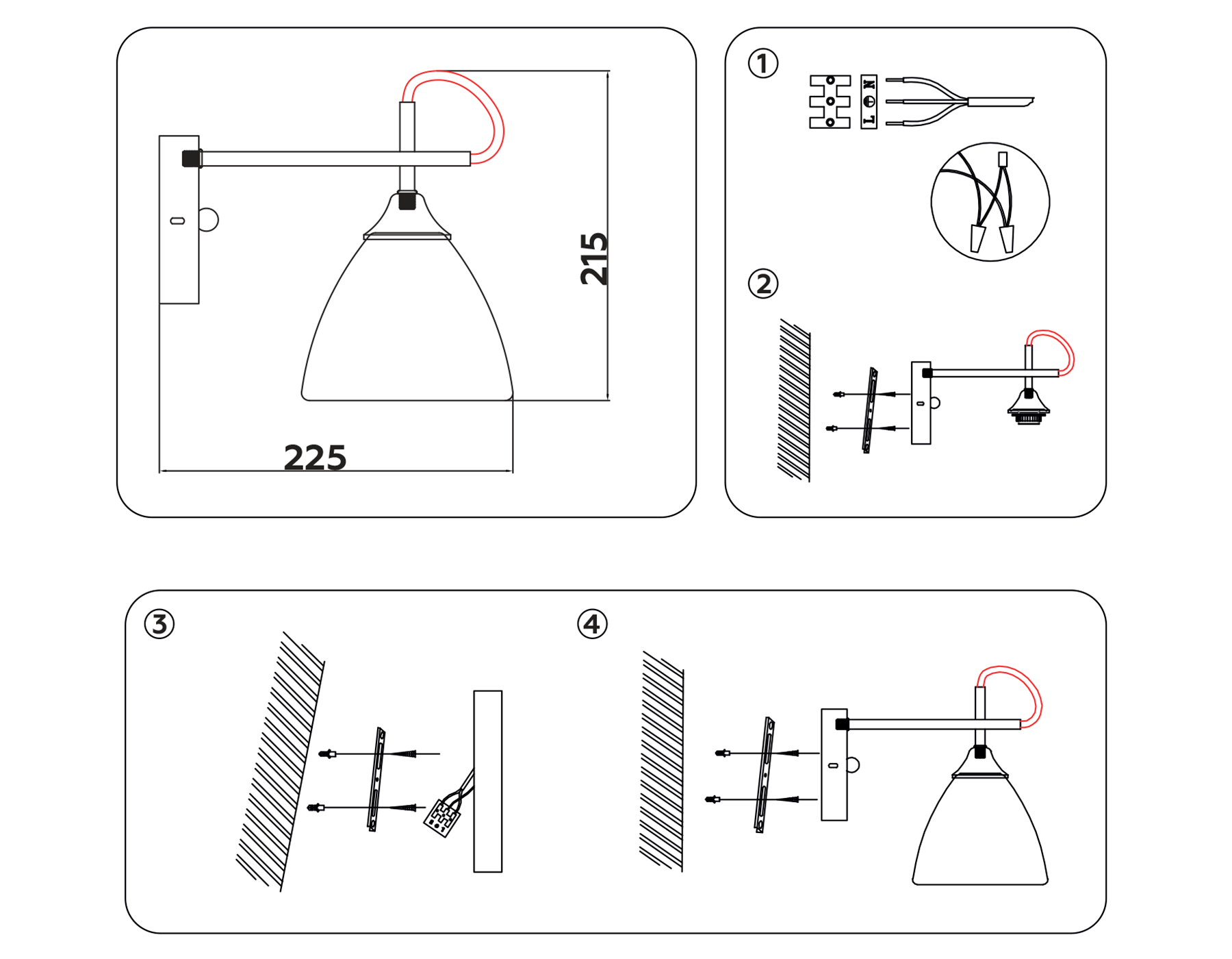 | Комплектация | Настенный светильник со сменной лампой (лампочка в комплект не входит) |