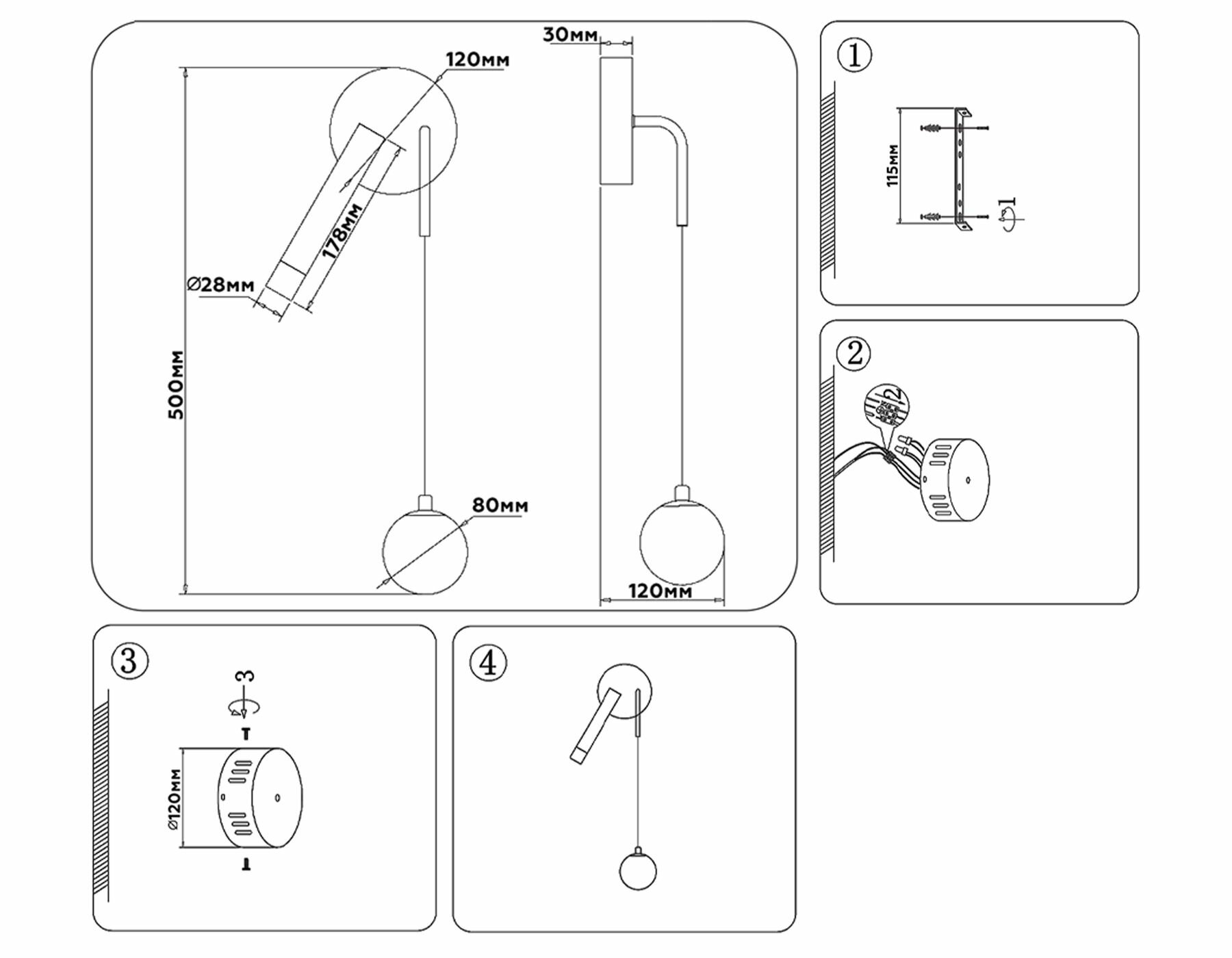 | Особенности | возможность подключения диммера / лампы в комплекте / поворотный / проводной / прозрачный плафон / регулировка по высоте / с абажуром / с выключателем |