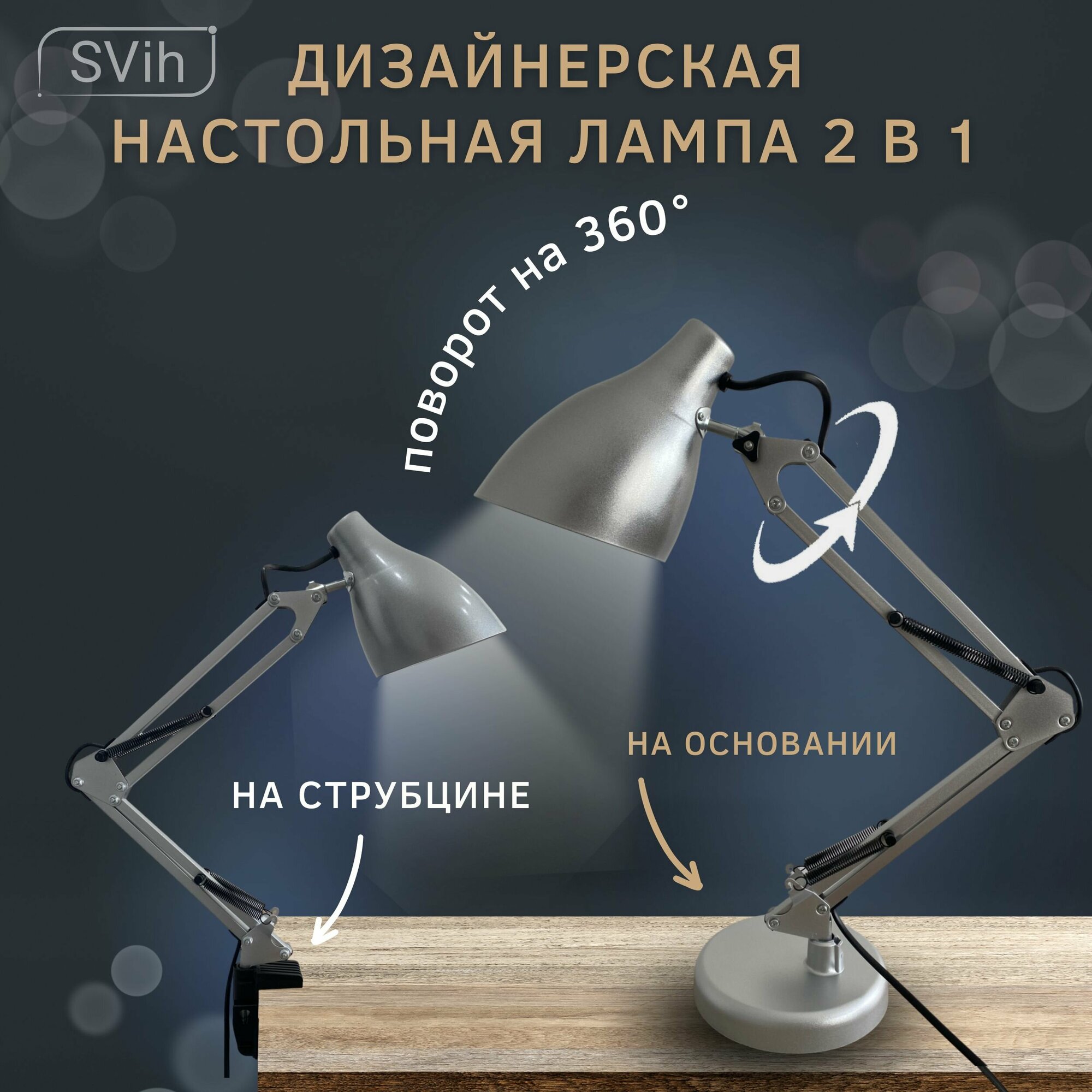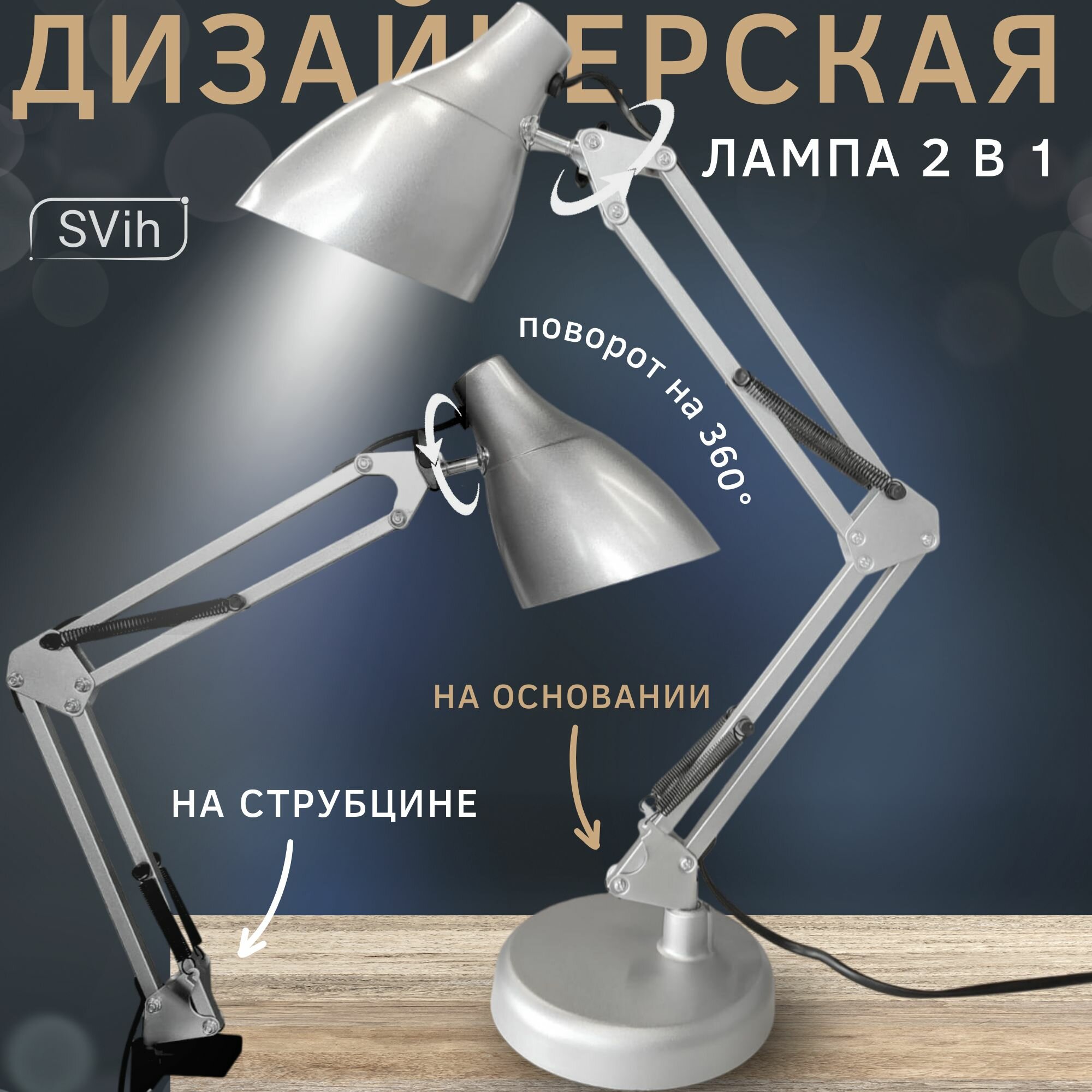 Настольная лампа SVih, E27, 60 Вт, с регулировкой наклона и высоты, на струбцине