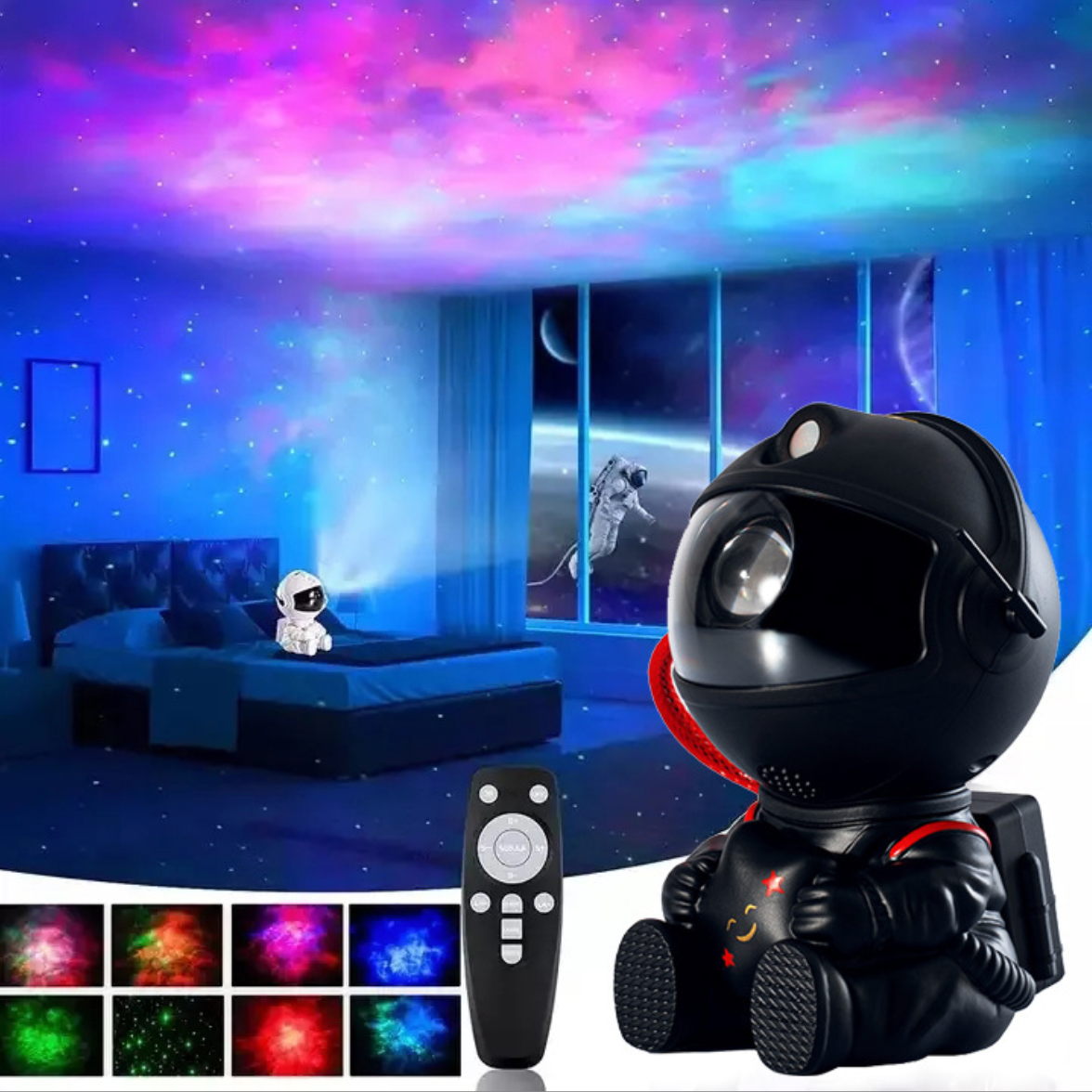 Купить Детский лазерный ночник проектор черный маленький "Космос" с пультом, звездное небо, 3D космический ночник, фигурка космонавт, астронавт