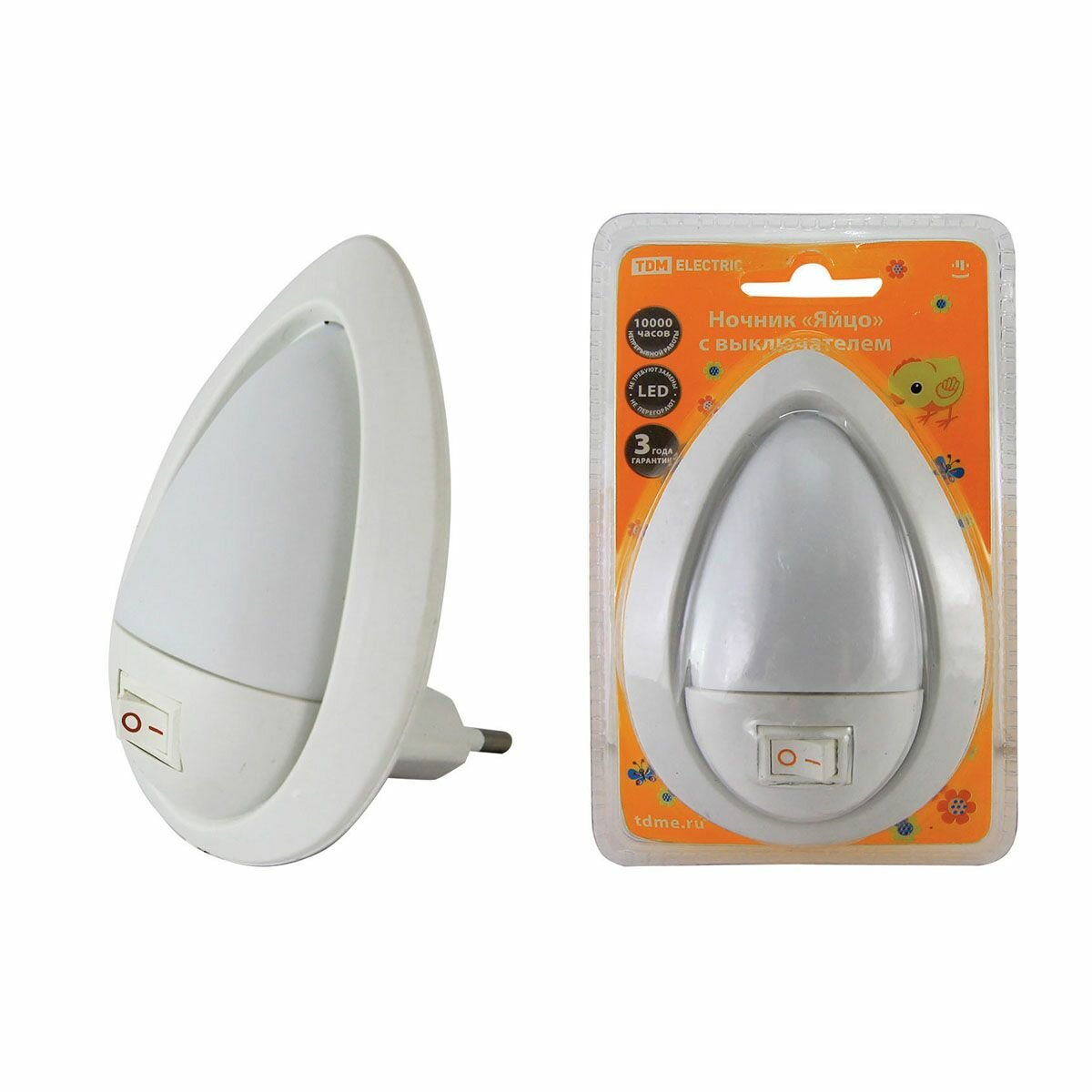 Ночник "Яйцо" с выключателем, белый, 0,5 Вт, 220 В, TDM SQ0357-0012 (1 шт.)