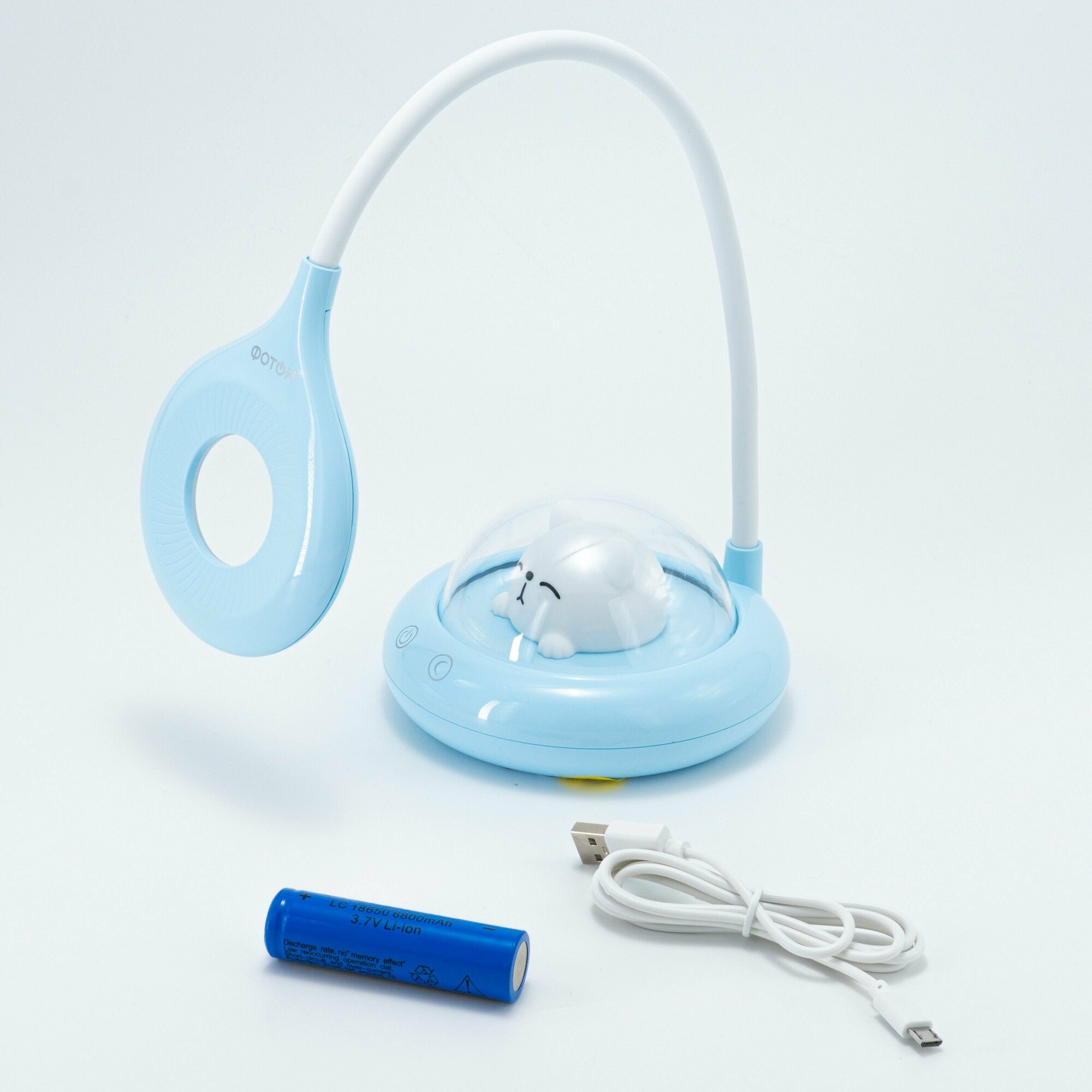 Настольный светильник ночник аккумуляторный фотон "Космический кот", голубой