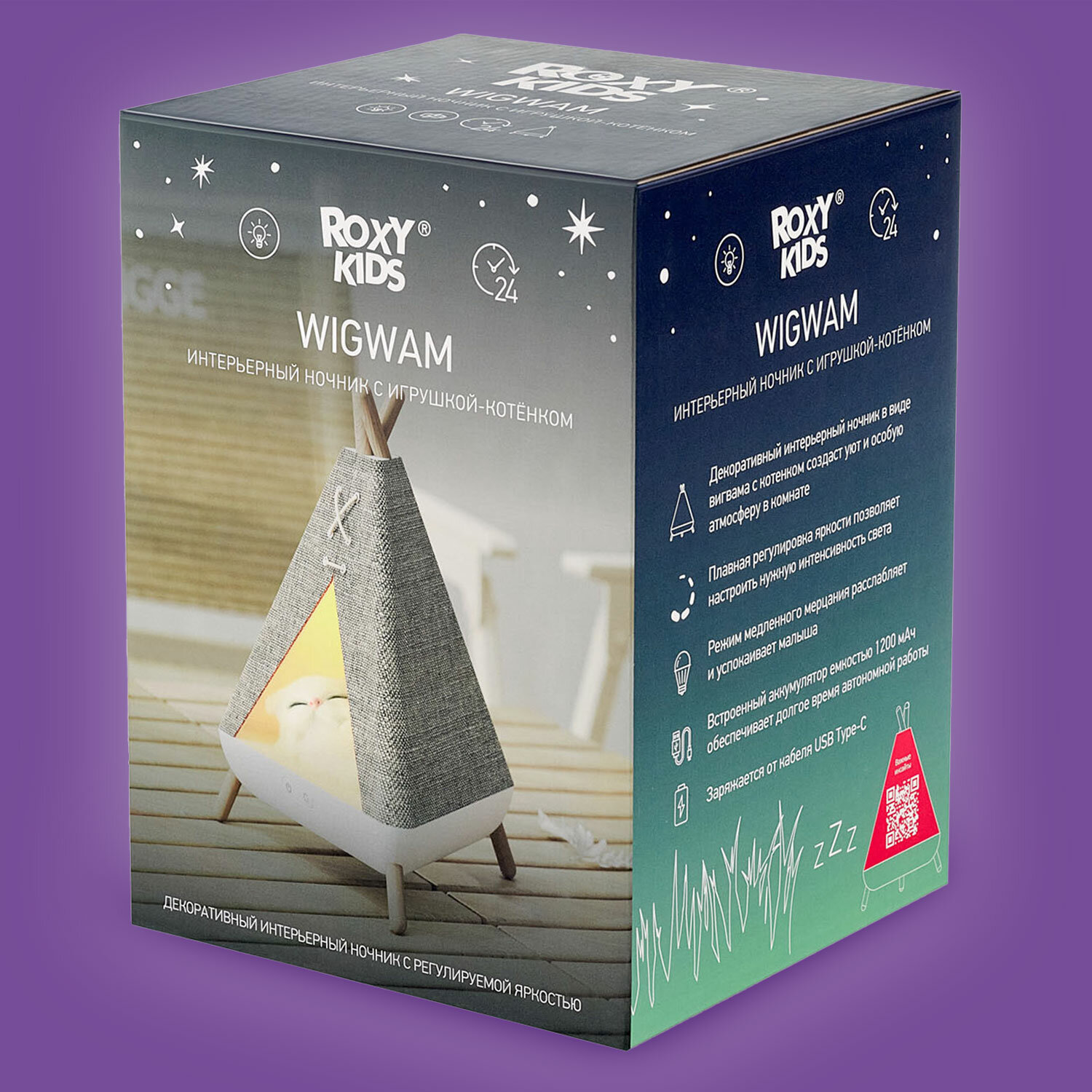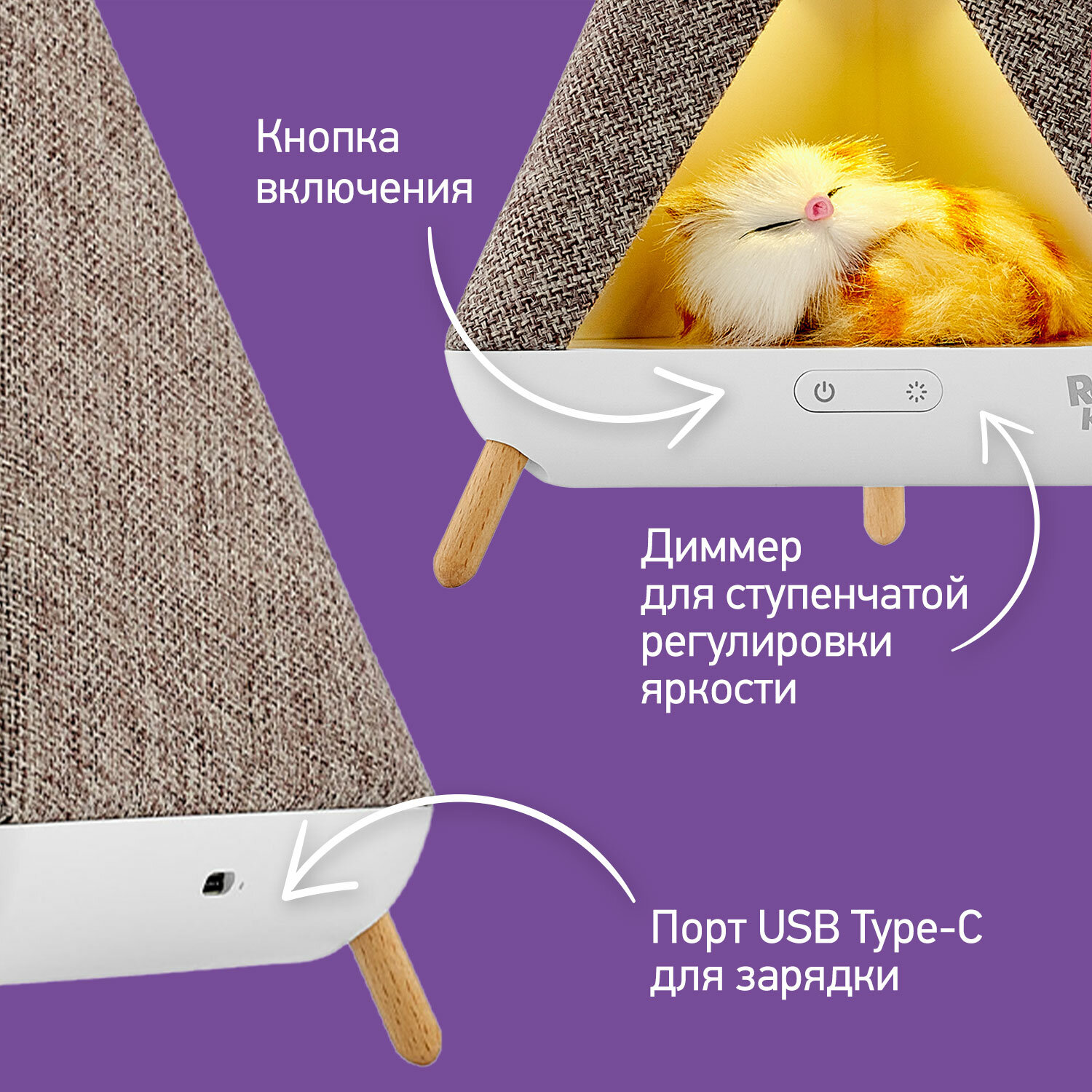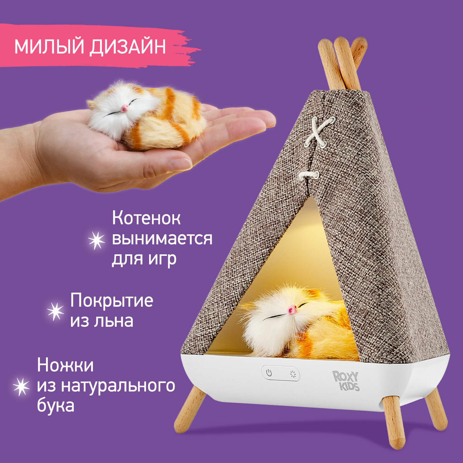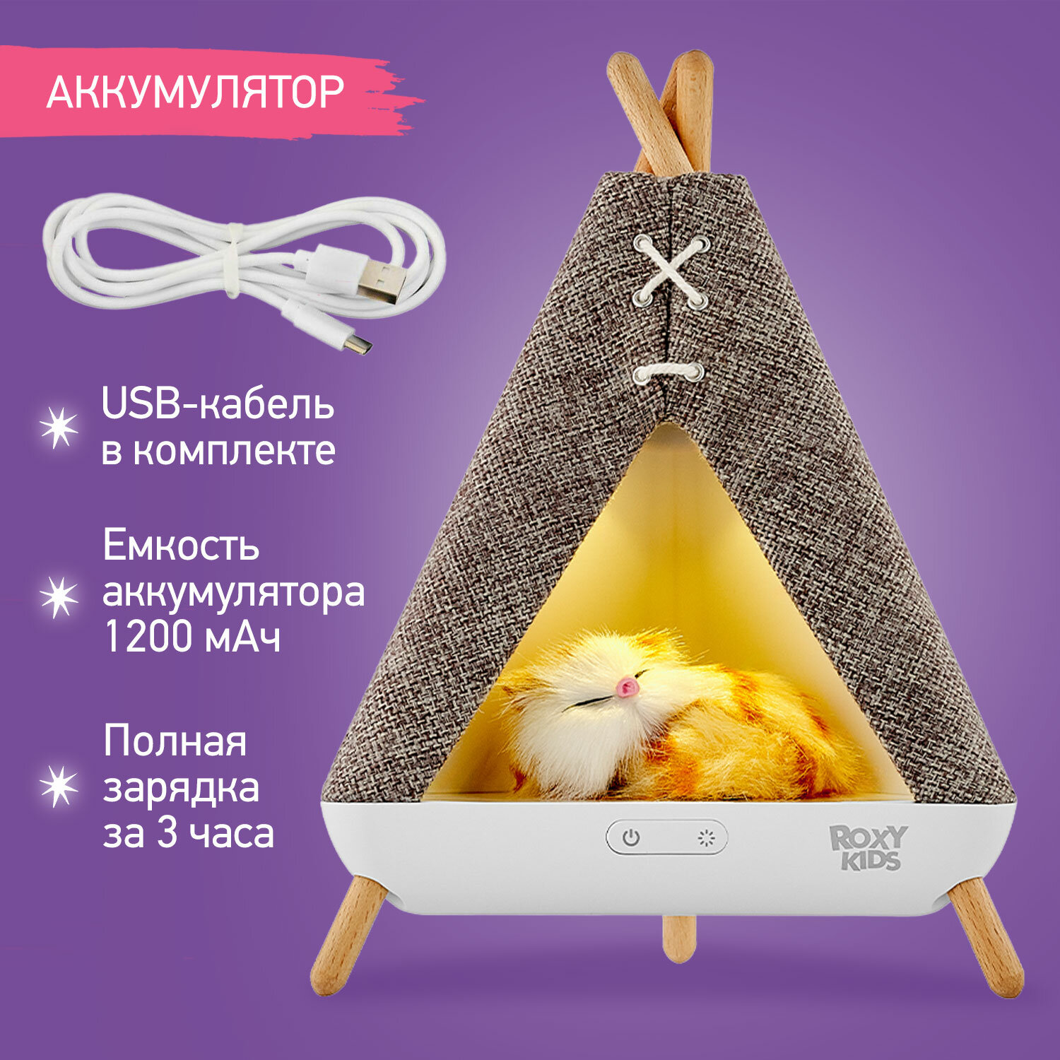 Ночник детский Roxy-kids R-NL0027 Вигвам с котёнком интересное: