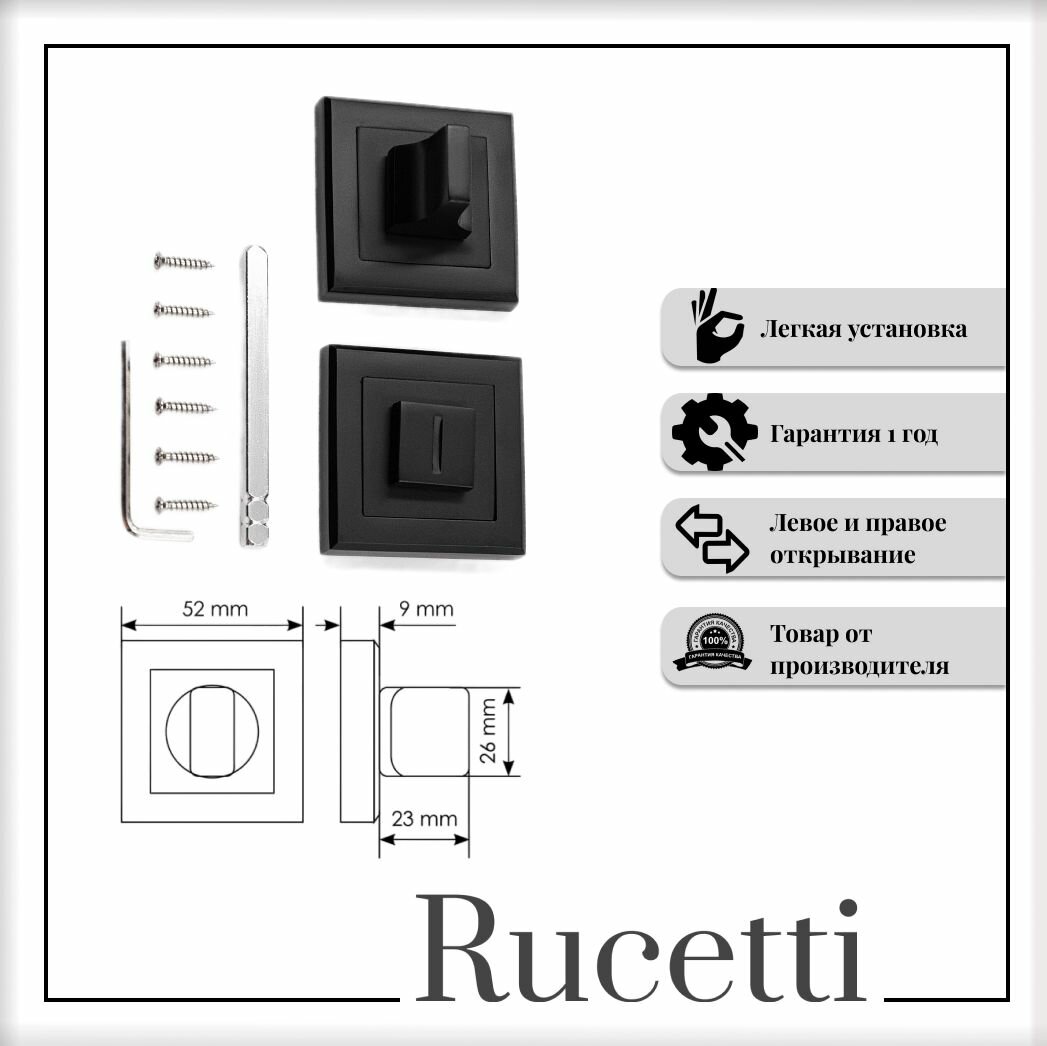 Завертка дверная Rucetti, фиксатор для межкомнатных дверей, защелок, замков, задвижек RAP WC-S BL, квадратная розетка, черный