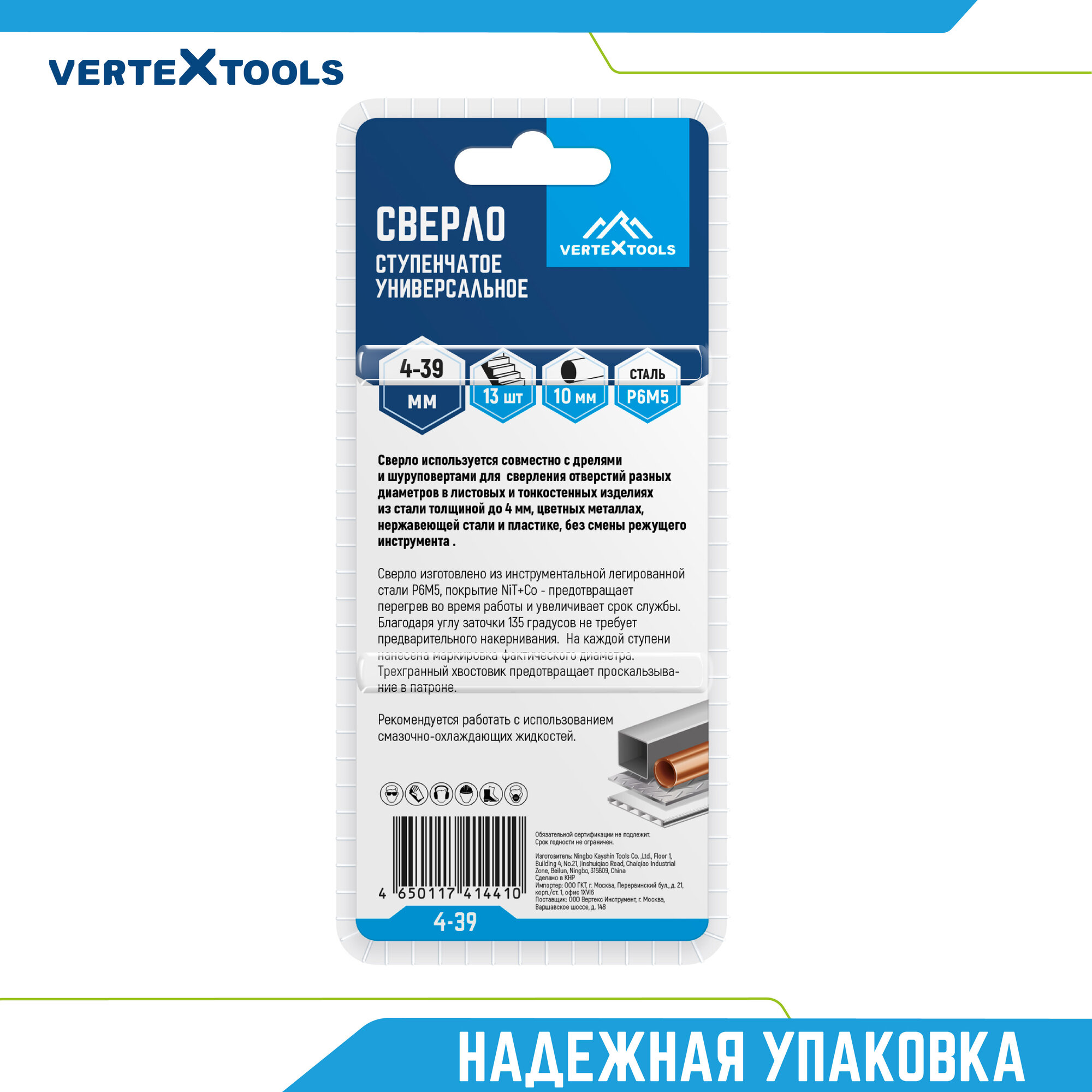 СохранитьСверло по металлу ступенчатое Vertextools 4х39 мм. (4-39) интересное: